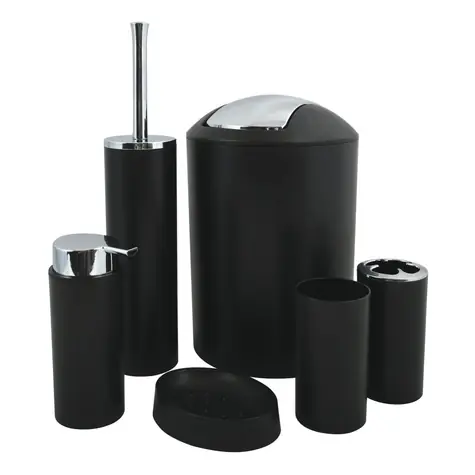 MSV HANNAH sada 6 ks kúpeľňových doplnkov matná čierna / plast