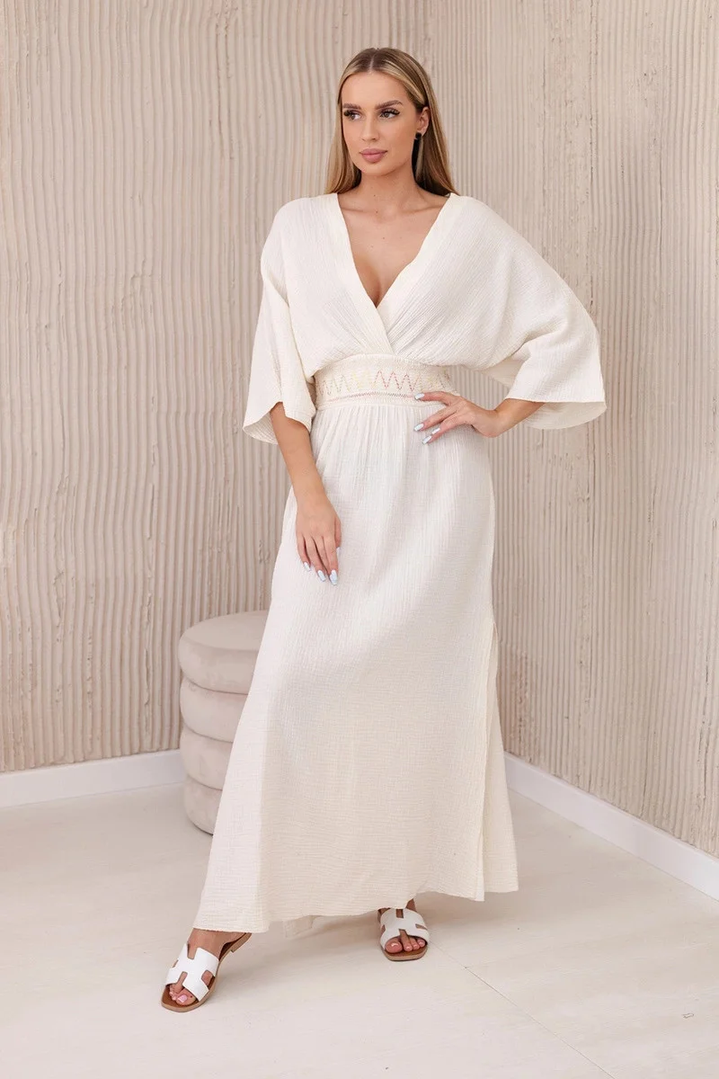 Mušelínové šaty s výšivkou v páse svetlo béžovej farby UNI