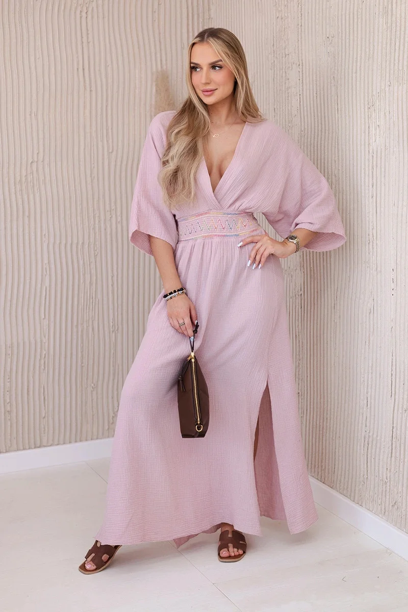 Šaty s vyšívaným mušelínom v páse sú jedinečným kúskom odevu, ktorý v sebe spája jemnosť a rafinovaný štýl. Vyšívaný detail v páse dodáva šatám jemnosť a eleganciu a zároveň zvýrazňuje líniu pása. Šaty sú vyrobené z ľahkého a vzdušného mušelínového materiálu, ktorý zaručuje pohodlie pri nosení aj počas teplých dní. Ich jedinečnosť spočíva v kombinácii romantickej výšivky s ľahkosťou mušelínu, ktorá celému stylingu dodáva jedinečný šarm. Tieto šaty sú ideálne na letné stretnutia, romantické večery alebo výnimočné príležitosti, vďaka ktorým sa budete cítiť žensky a výnimočne a dodajú vášmu štýlu jemnosť a eleganciu. Veľkosť je univerzálna a bude vhodná pre ženy, ktoré nosia veľkosť S, M alebo L. TALIANSKA VÝROBA Materiálové zloženie: materiálové zloženie: 100 % bavlna Nižšie uvedené miery sú merané na plocho +/- 1 cm Ak chcete získať obvodovú mieru, šírku vynásobte 2 Rozmery: Celková dĺžka: 140 cm Šírka v páse: 29 cm / po natiahnutí: 44 cm Recept na pranie: Pred praním oblečenia si vždy prečítajte pokyny na pranie uvedené na vnútornom štítku. Perte v ruke podľa návodu na štítku na odeve Perte pri maximálnej teplote 30 °C, žehlite pri maximálnej teplote 110 °C, Nebieľte ani nechlórujte, Čistite chemicky v benzínovom čističi, Nesušte v bubnovej sušičke.
