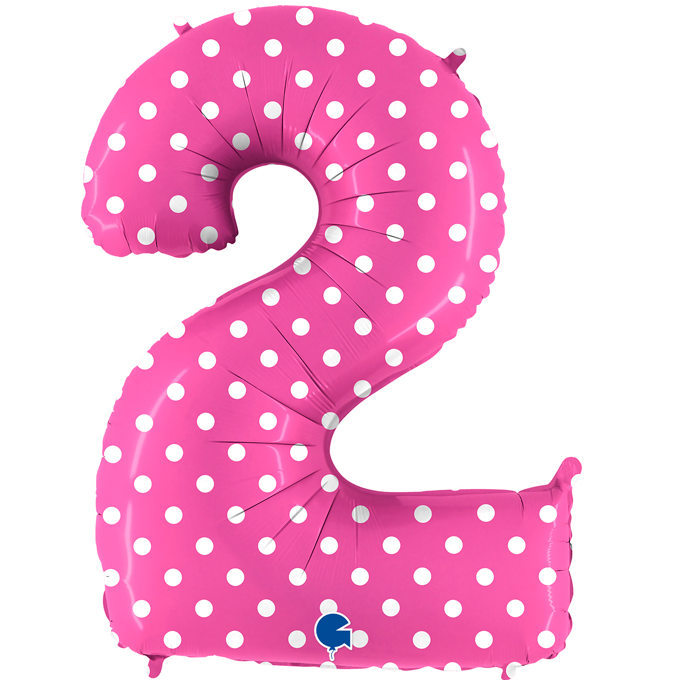 Nafukovací balónik číslo 2 ružový s bodkami 102 cm - Grabo - Grabo