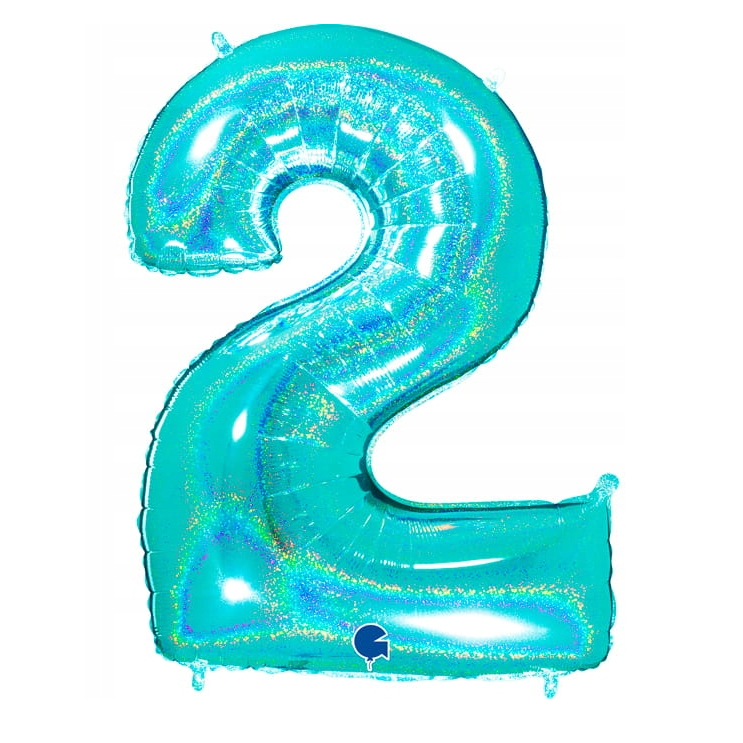 Nafukovací balónik číslo 2 tyrkys holografický 102 cm - Grabo - Grabo