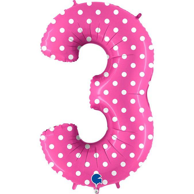 Nafukovací balón číslo 3 ružový s bodkami 102 cm - Grabo - Grabo