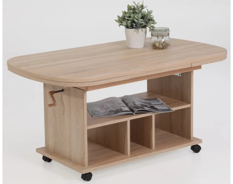 Konferenčný stolík so zásuvkami Nordi, dub riviera/biela lesk%
