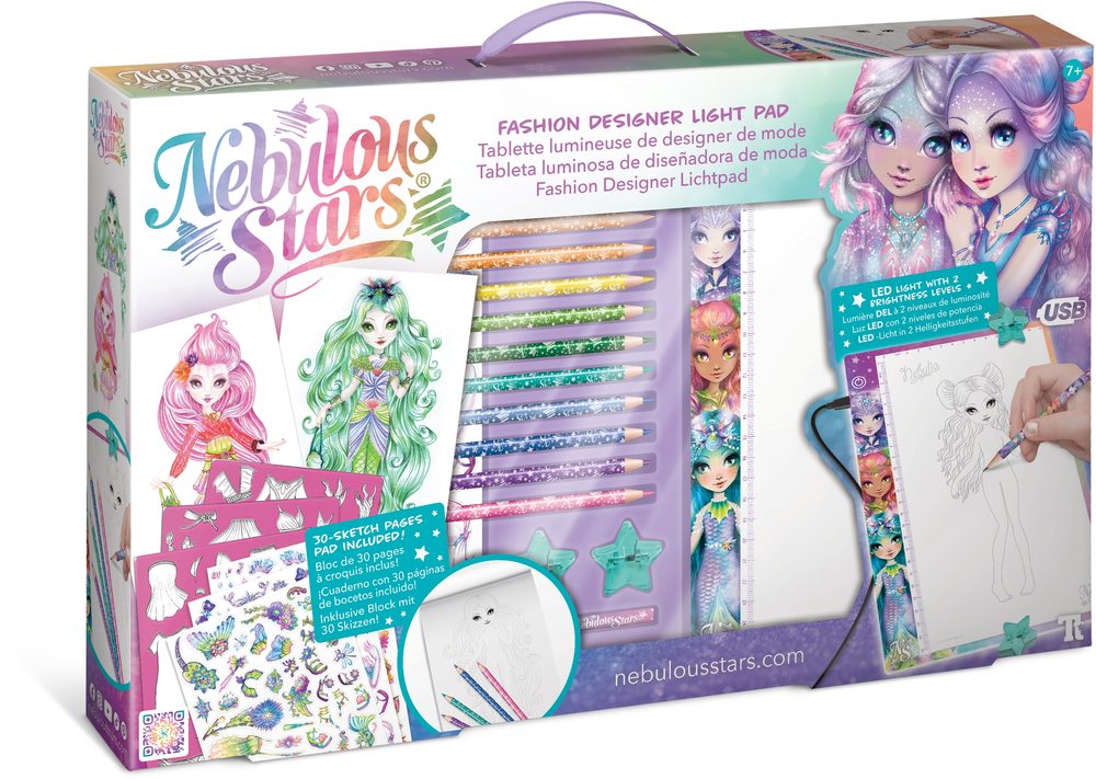 Nebulous Stars Dizajnová podsvietená tabuľka 14x25 cm, Nebulous Stars, W039735 Nebulous Stars Dizajnérsky podsvietený stôl. Plocha stola 14x25 cm. 2 úrovne jasu. Obsah - podsvietená tabuľa, usb kábel, 11 pasteliek, 30 šablón, 2 klipy.