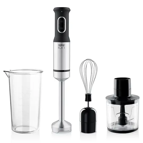 Niceboy ION Twister T3 strieborná / Tyčový mixér / 1200 W / nádoba 600 ml / minisekáčik / šľahacia metla
