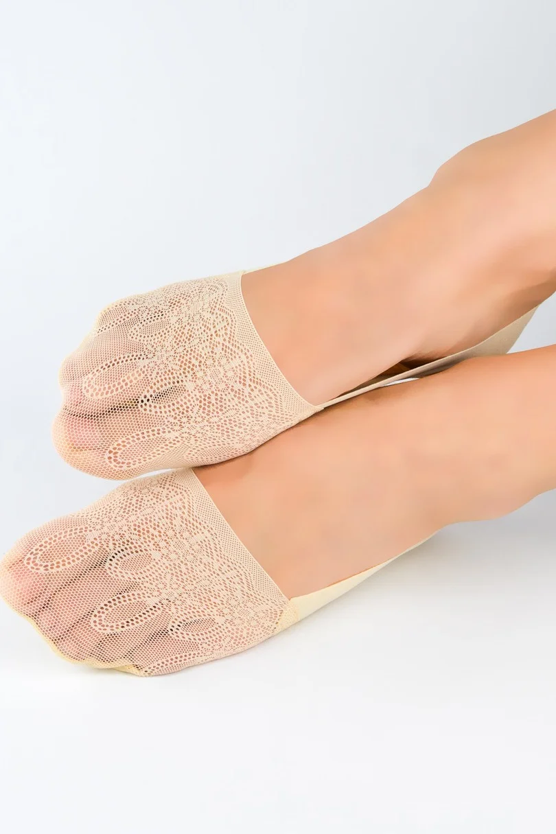 Elegancia a pohodlie v jednom! Šnurovacie podpätky SN049 sú dokonalým riešením pre ženy, ktoré oceňujú štýl a pohodlie. Sú vyrobené zo vzdušného sieťového úpletu s ozdobným čipkovým lemom a dodajú decentný nádych každému outfitu. Silikónový pásik na podpätku zabraňuje pošmyknutiu a protišmyková podrážka z ABS zaručuje stabilitu na akomkoľvek povrchu. Vďaka bavlnenej podrážke sú podpätky mimoriadne pohodlné a dokonale sa prispôsobia chodidlu. Sú ideálne do balerín, mokasín a ľahkých topánok!.
