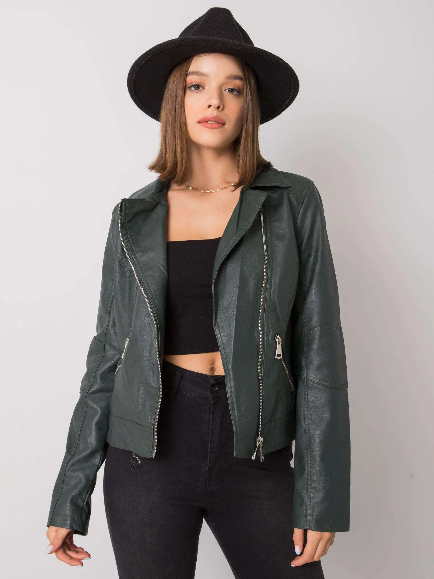 Tmavozelená ekologická kožená bunda . Doplnky: vrecká, podšívka zloženie látky: vrchná časť - 100% polyester, podšívka - 100% polyester spôsob prania: pranie v práčke na 30 °C Modelka má na sebe veľkosť S. Rozmery modelky: výška 169 cm, poprsie 90 cm, pás 60 cm, boky 84 cm. Rozmery bundy veľkosti S merané na plocho: šírka v podpazuší - 45 cm, celková dĺžka - 52 cm, dĺžka rukáva - 62 cm Veľkosť Alt.Výška Obvod hrudníka hrudník Externé. dĺžka. rukáv Vnútorné. dĺžka rukávov XS 34 156-164 78 57 47 S 36 160-164 82 59 49 M 38 162-172 86 61 51 L 40 164-174 91 63 53 XL 42 166-178 96 65 55 2XL 44 168-180 100 67 57