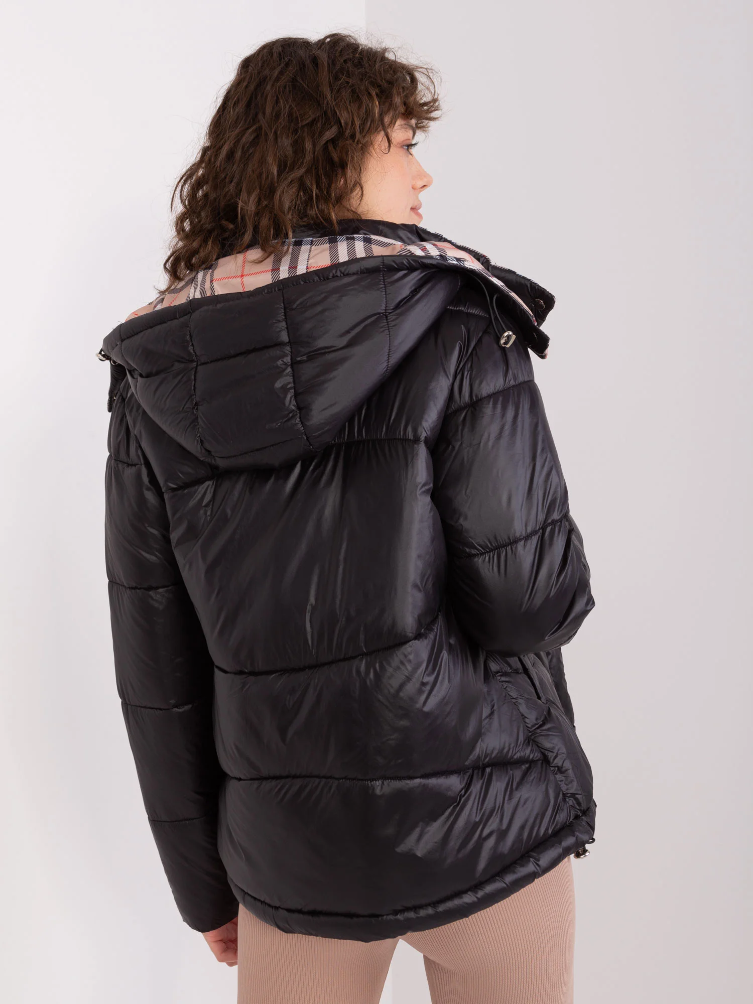 Čierna zateplená zimná bunda. kód výrobku: NM-KR-TR511.96P dominantný vzor: žiadny vzor, skontrolujte štýl: ležérny príležitosť: ležérna, mestská, vychádzková materiálové zloženie zvršku: 100 % nylon materiálové zloženie podšívky: 100% polyester materiálové zloženie výplne: 100% syntepon Modelka má na sebe veľkosť S. Rozmery modelky: výška 177 cm, prsia 84 cm, pás 62 cm, boky 89 cm. Rozmery bundy vo veľkosti S merané na plocho: šírka v podpazuší - 58 cm, celková dĺžka - 68 cm, dĺžka rukáva - 65 cm.