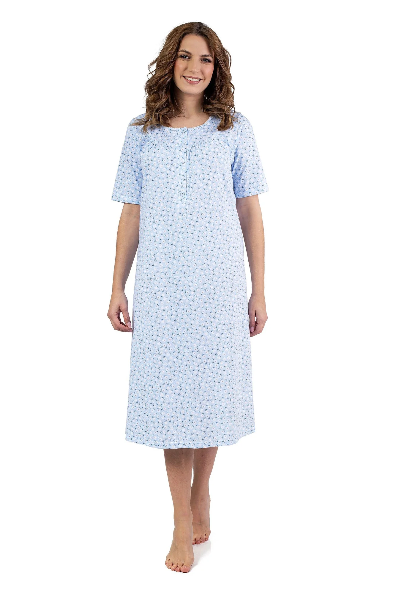 Nočná košeľa 013 blue plus REGINA - svetlomodrá - vyrobená z kvalitnej bavlny - so vzorom - okrúhly výstrih - krátke rukávy - zapínanie na gombíkyZloženie materiálu: 100% bavlna Veľkosti pre ženy S M L XL 2XL 3XL 4XL Obvod hrudníka (cm) 84 cm 90cm 96cm 102cm 108cm 116cm 124cm Obvod bokov (cm) 91cm 96cm 102cm 107cm 113cm 120cm 128cm Výška (cm) 160cm 164cm 168cm 168cm 164cm 164cm 164cm Veľkosti pre mužov M L XL 2XL 3XL Obvod hrudníka (cm) 100 cm 104cm 108cm 112cm 122cm Obvod bokov (cm) 90cm 94cm 98cm 104cm 114cm Výška (cm) 172cm 178cm 182cm 184cm 184cm