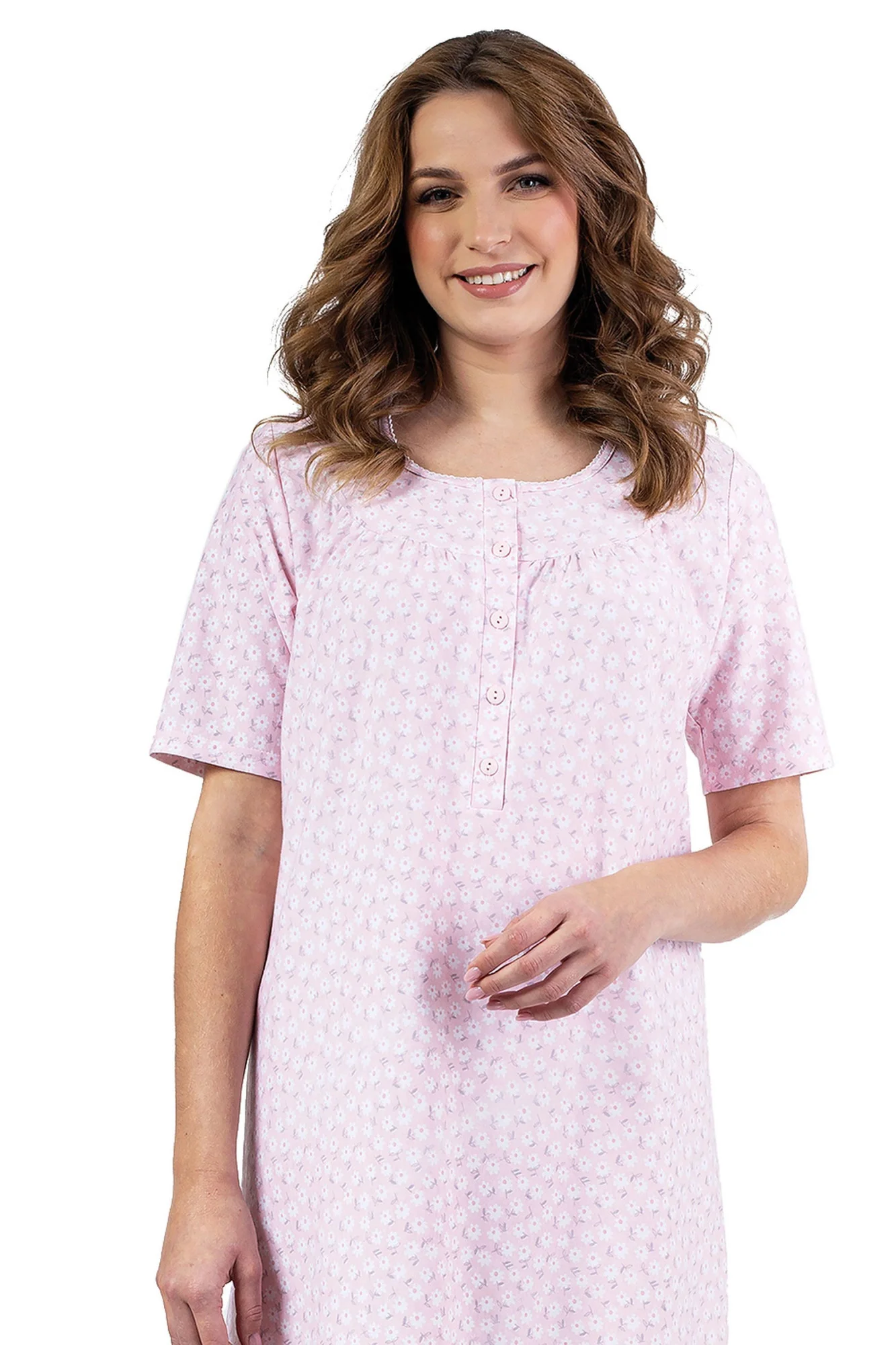 Nočná košeľa 013 pink plus REGINA - ružová - vyrobená z kvalitnej bavlny - so vzorom - okrúhly výstrih - krátke rukávy - zapínanie na gombíkyZloženie materiálu: 100% bavlna Veľkosti pre ženy S M L XL 2XL 3XL 4XL Obvod hrudníka (cm) 84 cm 90cm 96cm 102cm 108cm 116cm 124cm Obvod bokov (cm) 91cm 96cm 102cm 107cm 113cm 120cm 128cm Výška (cm) 160cm 164cm 168cm 168cm 164cm 164cm 164cm Veľkosti pre mužov M L XL 2XL 3XL Obvod hrudníka (cm) 100 cm 104cm 108cm 112cm 122cm Obvod bokov (cm) 90cm 94cm 98cm 104cm 114cm Výška (cm) 172cm 178cm 182cm 184cm 184cm