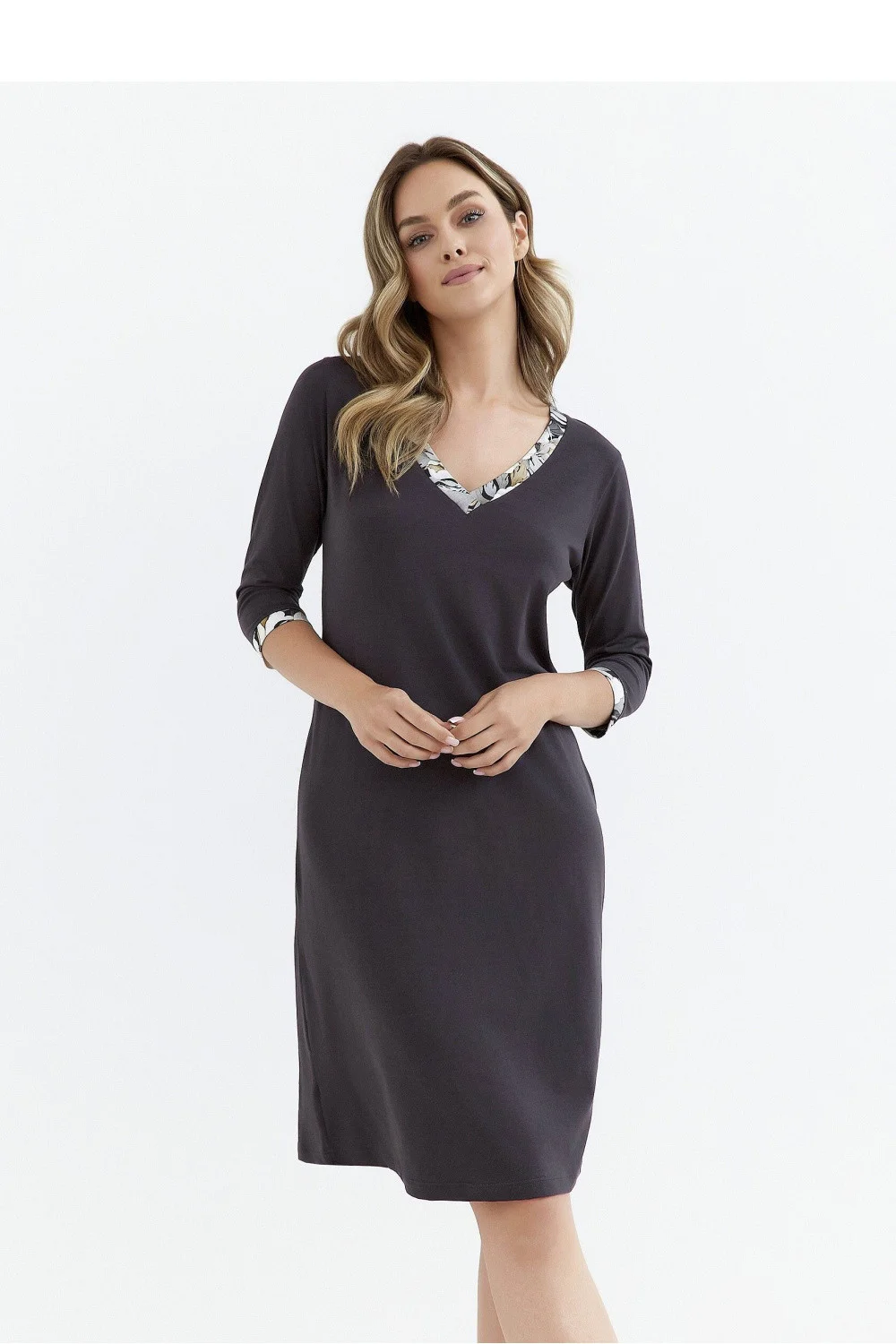 Táto dámska nočná košeľa s 3/4 rukávmi je kombináciou pohodlia a jemnej elegancie. Je vyrobená z hladkej, príjemnej tkaniny a poskytuje pohodlie a voľnosť počas celej noci. Výstrih do V, zakončený jemným lemovaním, dodáva ženský šarm. Voľný, pohodlný strih neobmedzuje pohyb, takže košeľa je ideálna na spanie aj domáci relax. Zabalená v praktickom fóliovom vrecku je aj skvelým darčekom. bavlna 95 % Elastan 5 % Veľkosť Obvod pása Obvod hrudníka L108 cm100 cmM100 cm92 cmS92 cm86 cmXL116 cm108 cmXXL124 cm116 cmXXXL132 cm124 cm
