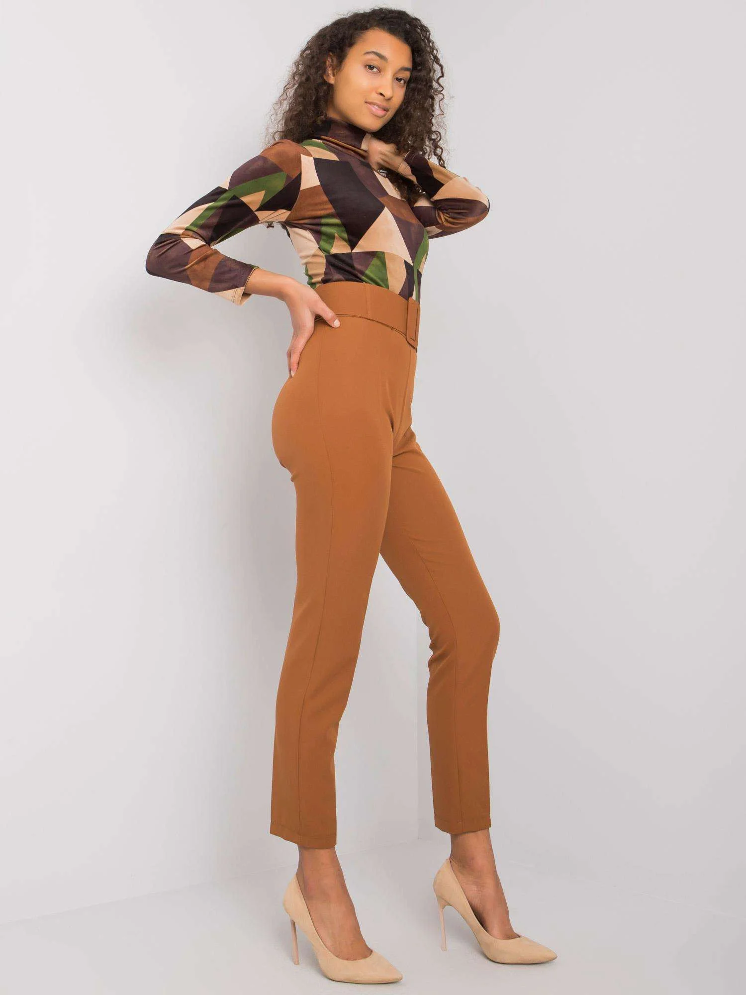 príslušenstvo: opasok, všitý zips materiálové zloženie: polyester spôsob prania: možno prať v práčke pri 30 °C Modelka má na sebe veľkosť 36. Rozmery modelky: výška 178 cm, prsia 82 cm, pás 61 cm, boky 88 cm. Rozmery nohavíc veľkosti 36 merané na plocho: šírka pása - 35 cm, výška pása - 32 cm, celková dĺžka - 102 cmMedzinárodná veľkosťVýškaObvod pásaObvod bokovVonkajšia dĺžka nohavícVnútorná dĺžka nohy36S160-16872-8090877438M162-17278-8694907540L164-17484-90102947642XL166-17888-961069877