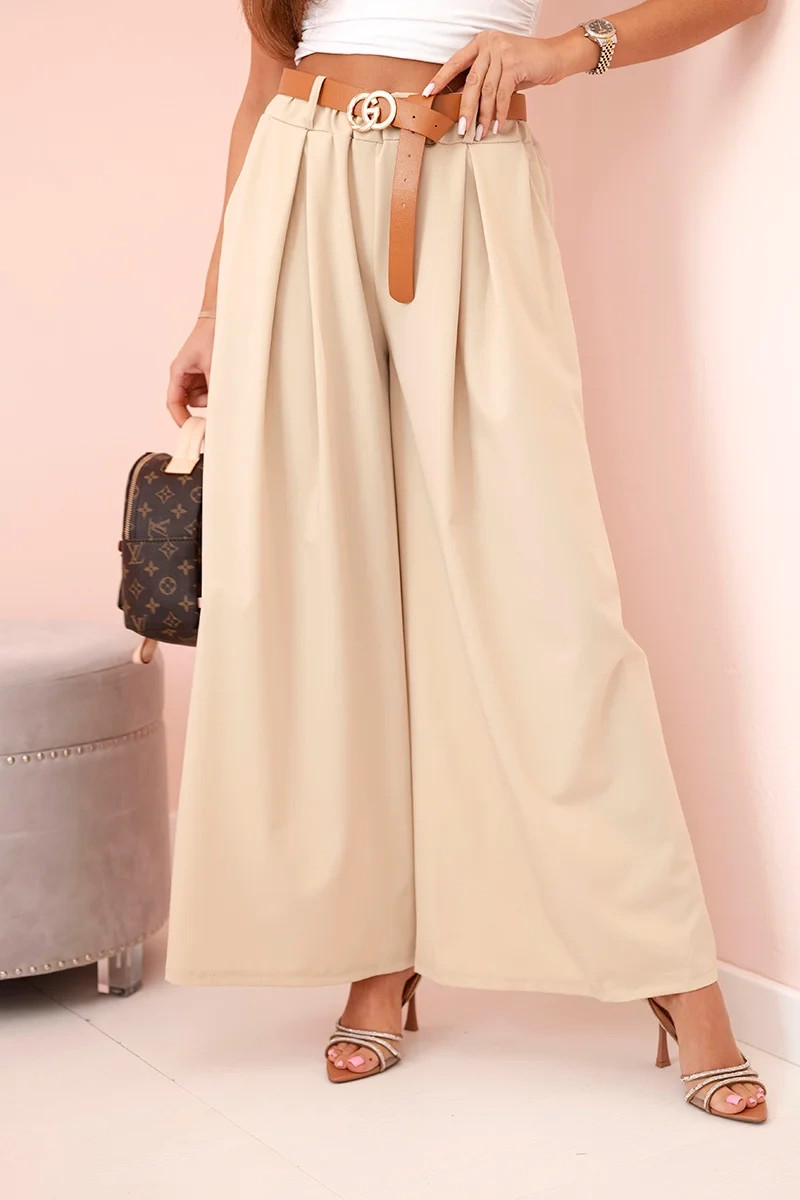 Tieto štýlové nohavice so širokými nohavicami sú skvelou voľbou pre ženy, ktoré ocenia pohodlie a moderný vzhľad. Sú vyrobené z kvalitného materiálu, dokonale sedia na postave a zvýrazňujú jej prednosti. Pás v súprave umožňuje dokonalé prispôsobenie v páse a dodáva celku elegantný charakter. Vďaka širokým nohaviciam nohavice vyzerajú veľmi efektne a zároveň poskytujú voľnosť pohybu. Sú ideálne na každodenné nosenie aj formálnejšie príležitosti - skvele sa hodia k elegantnej blúzke, košeli alebo priliehavému svetru. Univerzálna veľkosť je vhodná pre ženy nosiace veľkosti S, M alebo L. VYROBENÉ V TALIANSKU Materiálové zloženie: materiálové zloženie: 95 % viskóza, 5 % elastanu. Nižšie uvedené miery sú merané na plocho +/- 1 cm. Ak chcete získať obvod, šírku vynásobte 2x. Rozmery Šírka v páse: 34 cm / po natiahnutí: 48 cm Celková dĺžka: 104 cm Dĺžka od rozkroku: 73 cm Šírka v oblasti bokov: 60 cm Pokyny na pranie: Pred praním si vždy prečítajte pokyny na vnútornej etikete. Perte pri maximálnej teplote 30 °C, Žehlite pri maximálnej teplote 110 °C, Nebieľte a nepoužívajte chlór, Čistite chemicky v benzíne, Nesušte v bubnovej sušičke.