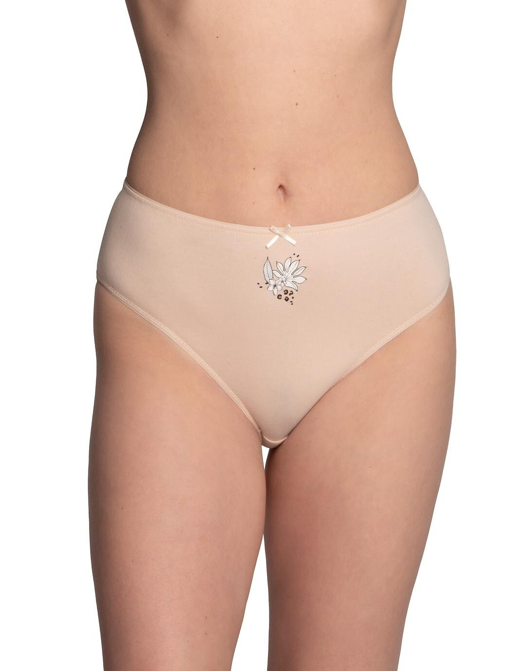 Bavlnené nohavičky pre ženy - klasický strih, bikiny štýl - elastický pás s vnútornou podšívkou - mierne zvýšené boky - balené v plastovom vrecku s tromi kusmi v ružovej a béžovej farbe Materiál: 95 % bavlna, 5 % elastan