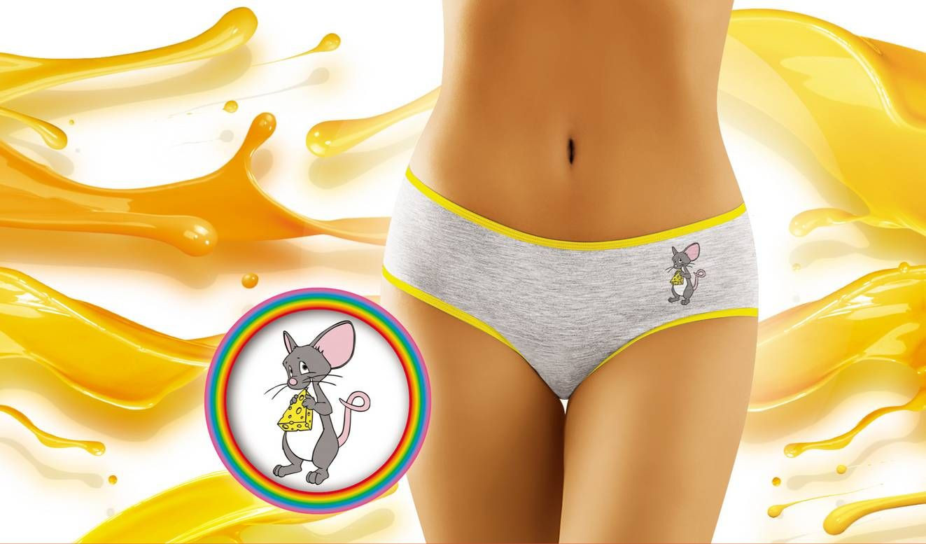 VeľkosťSMLXLXXL Obvod bokov85-88 cm89-92 cm93-96 cm97-100 cm101-104 cm Rad Funny sa vyznačuje nápaditými, vtipnými potlačami, zaujímavými farbami a predovšetkým najvyššou kvalitou (prírodné vlákna, najlepšie úplety a strih, ktorý zaručí váš komfort a pohodlie). V tejto verzii - malá, plachá, sivá myška...