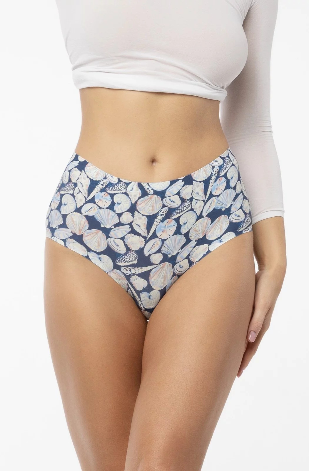 Dámske nohavičky - jemné mikrovlákno - farebná potlač s motívom mušlí - maxi strih, vyššia výška - širšie, plnšie boky - laserový strih, bez švov - neviditeľné pod priliehavým oblečením - balené v ozdobnej škatuľke Zloženie: 89 % polyamid, 10 % elastan, 1 % bavlna