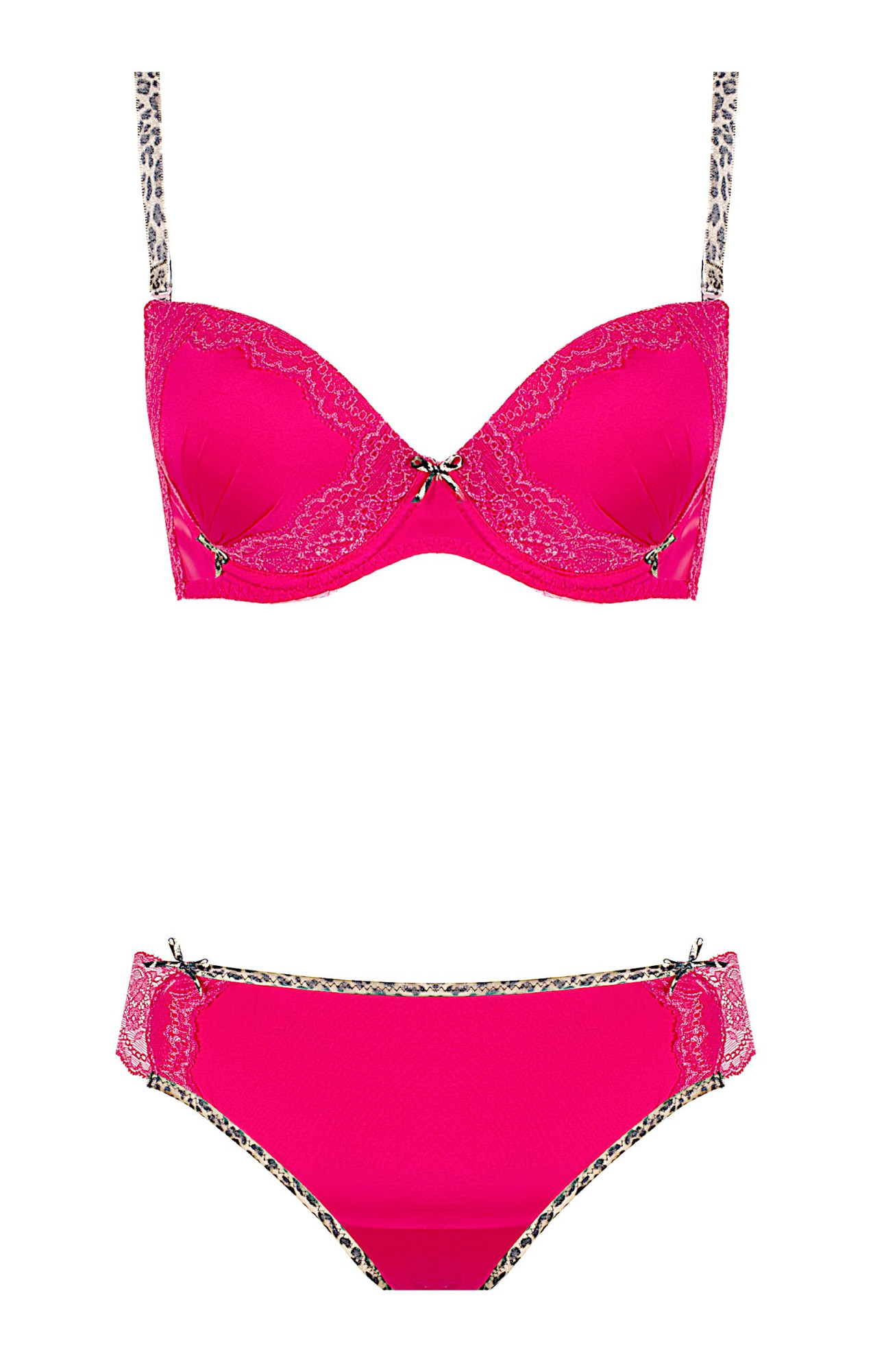 Krásne nohavičky v šťavnatej fuchsiovej farbe. Určite stoja za odporúčanie. Vrchný diel zdobí vzor mačacích očí. Boky s čipkou dodávajú šarm. Jedna z najzaujímavejších ponúk výrobcu na túto sezónu. Špičkové spracovanie.