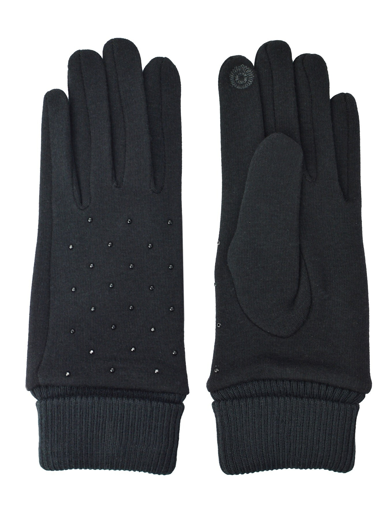 Dámske rukavice - končeky prstov - vyrobené z mäkkej pleteniny - z vnútornej strany zateplené mäkkým chmýřím - zdobené kamienkami - pre dotykové obrazovky Zloženie: 60 % polyester, 35 % bavlna, 5 % elastan