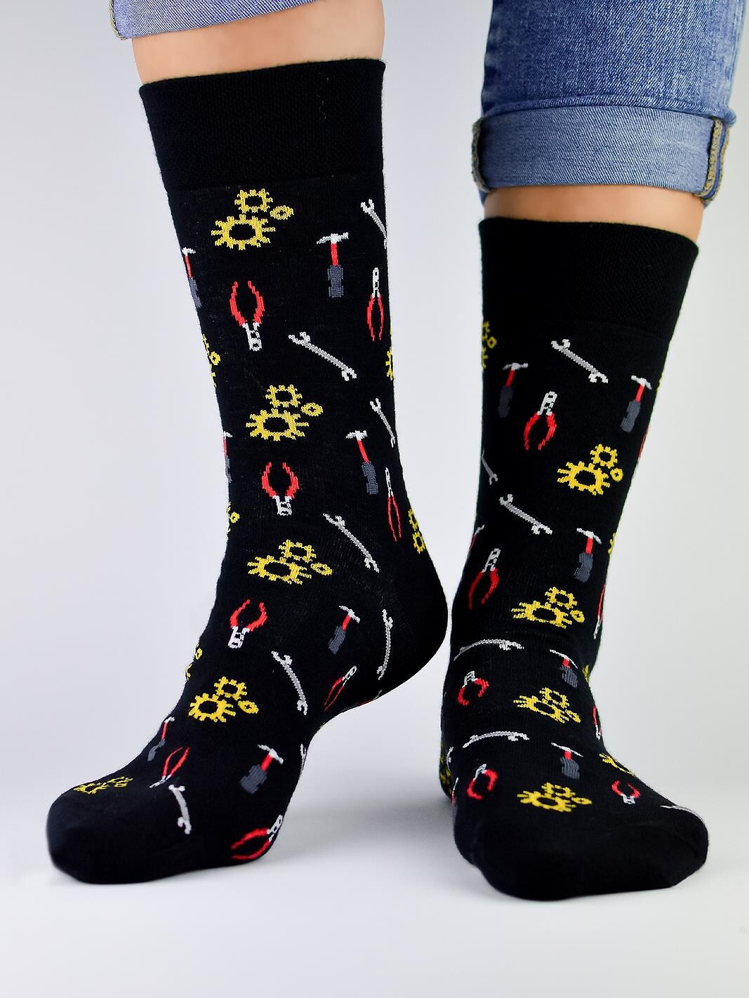 Pánske ponožky - zdobené farebným vzorom - ploché švy - netlačiaci lem Zloženie: 80 % bavlna, 18 % polyamid, 2 % elastan
