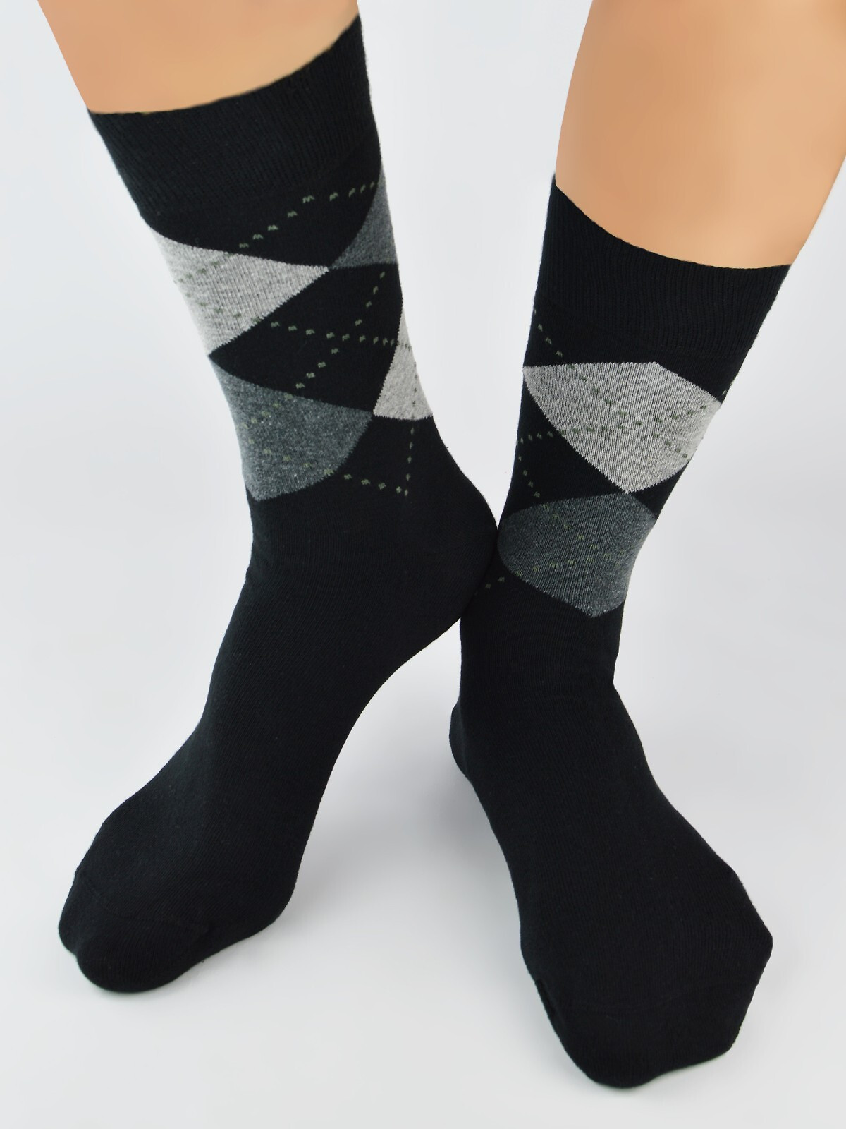 Pánske ponožky - zdobené farebným vzorom - ploché švy - netlačiaci lem Zloženie: 76 % bavlna, 21 % polyamid, 3 % elastan