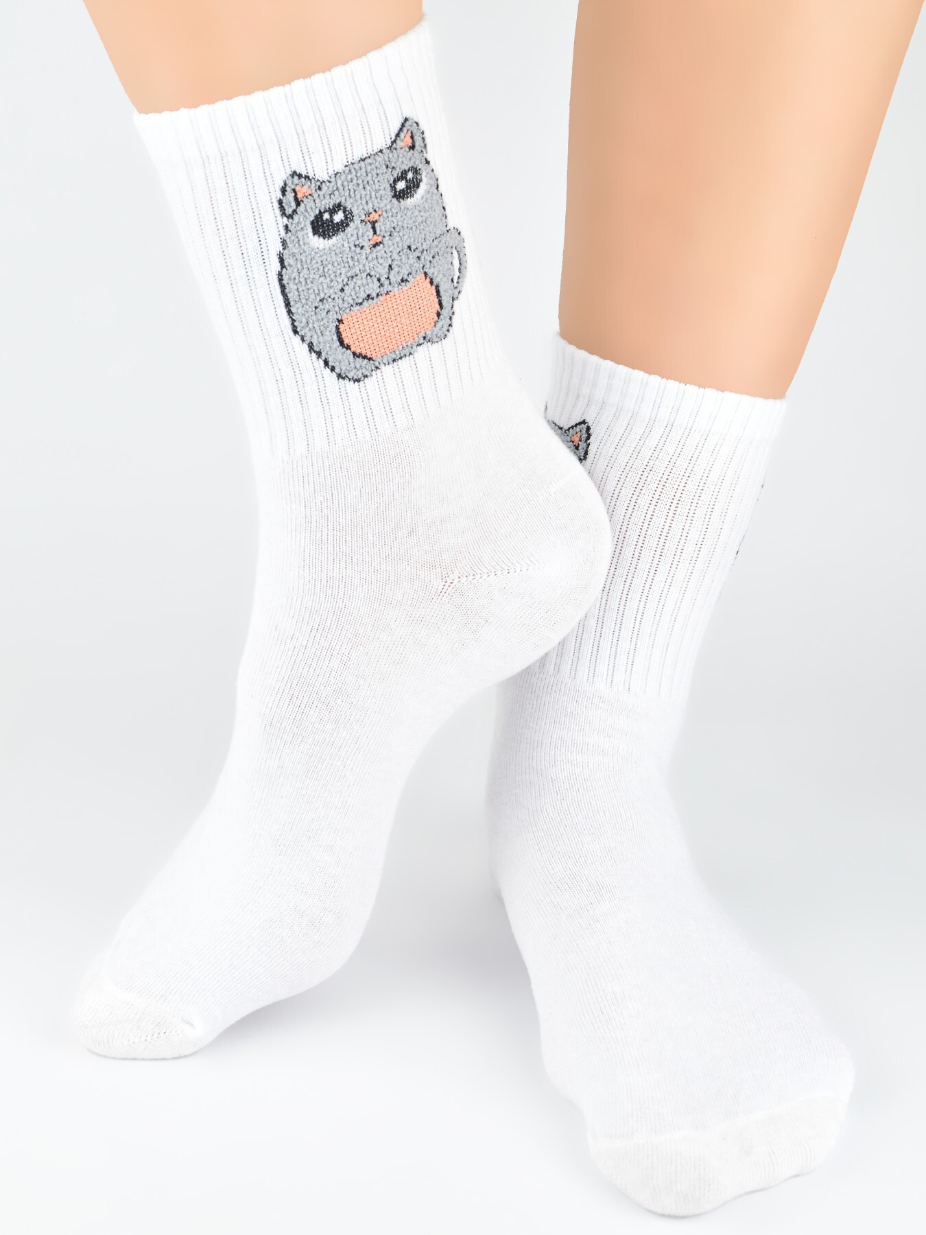 Dámske ponožky - rebrovaný zvršok - farebný vzor myši - ploché švy - netlačiaci sa lem Zloženie: 75 % bavlna, 19 % polyamid, 6 % elastan