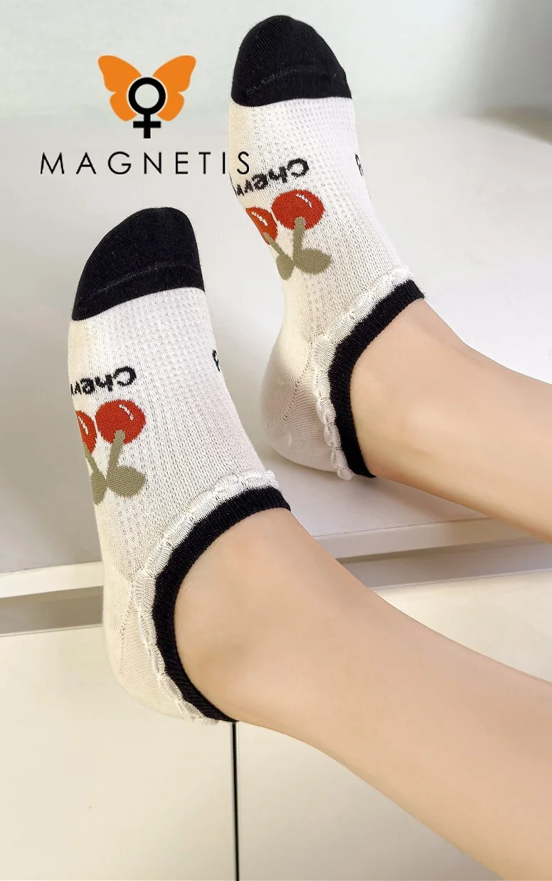 Dámske ponožky - mäkká bavlna - mäkký čerešňový vzor Zloženie: 92 % bavlna, 8 % elastan