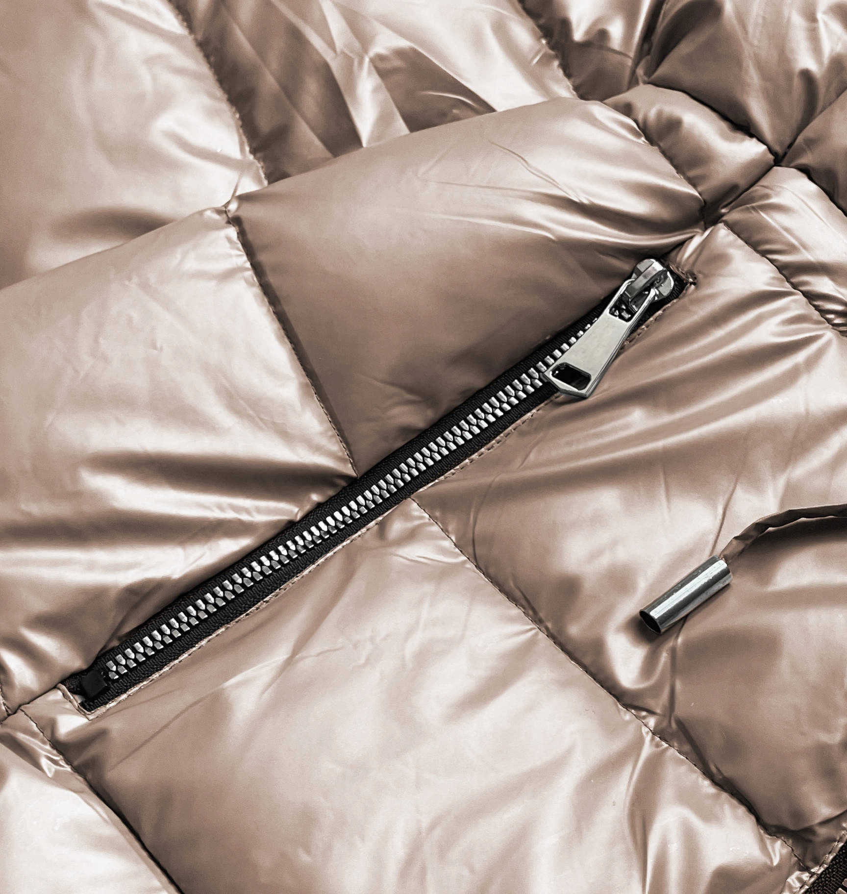 Obojstranná dámska metalická bunda v kakaovej farbe (b8070-12) odstíny béžové XXL (44)