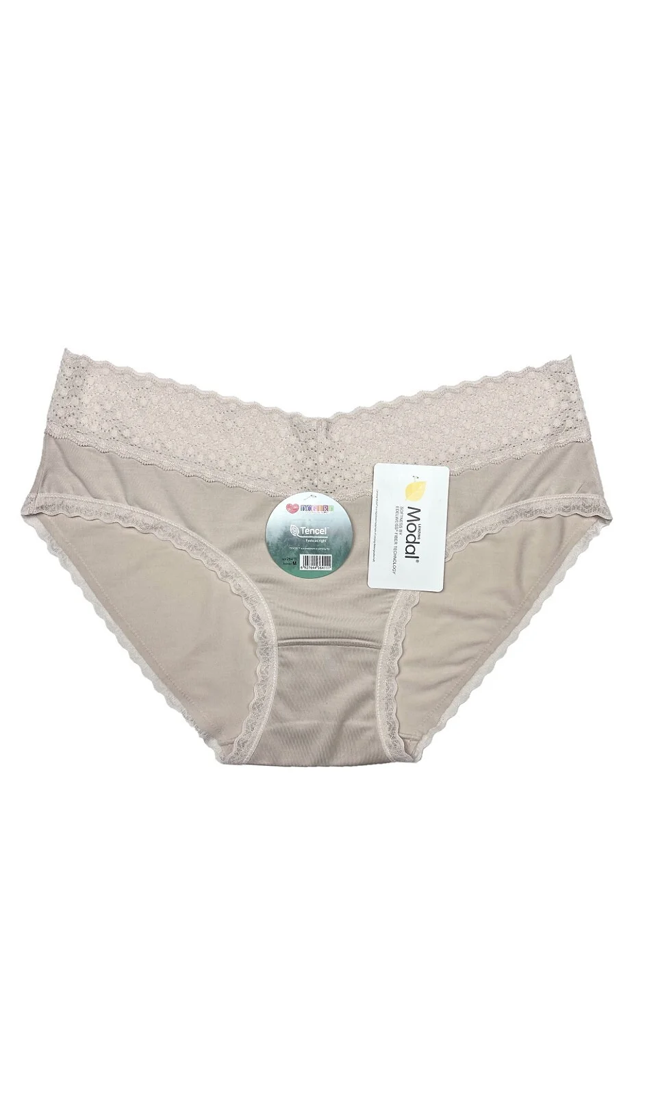 Dámske nohavičky z modalu jemného na tele - pás zdobený jemnou kvetinovou čipkou - balené v plastovom vrecku po dvoch kusoch vo farbe: ecru-čierna Zloženie: 94 % modal, 6 % spandex