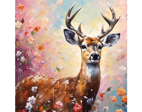 Obraz na plátne Jeleň v kvetoch, 35x35 cm, efekt olejomaľby%