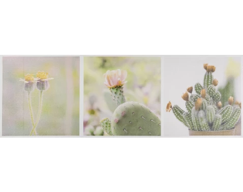 Obraz tlačený na plátne s motívom kaktusov dotvorí jedinečnú atmosféru domova. Obraz na stenu v podobe koláže má rozmer 90x30 cm.