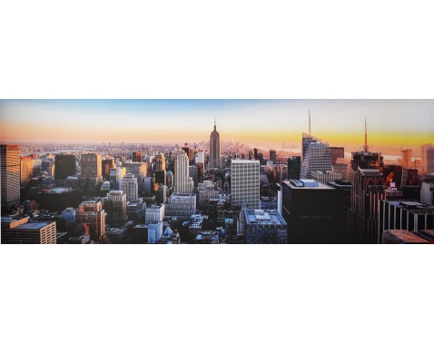Panoramatický obraz tlačený na plátne s motívom veľkomesta, dotvorí jedinečnú atmosféru domova. Rozmer 150x50 cm.