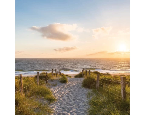 Štvorcový obraz na stenu o rozmeroch 35x35 cm s motívom pláže poskytne príjemný morský vánok do každej domácnosti. Do interiéru tiež vnesie upokojujúcu atmosféru a pohodu.