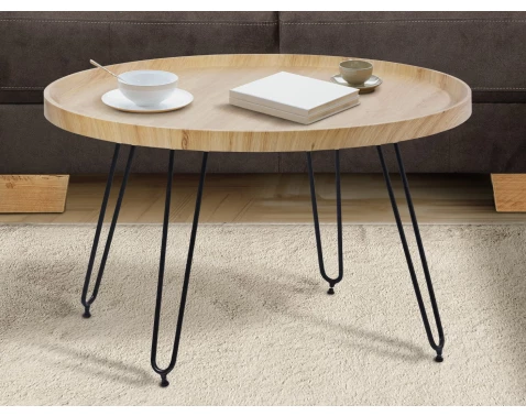 Okrúhly konferenčný stolík s priemerom 76 cm je vyrobený v útulnom drevodekóre svetlý dub. A v kombinácii s čiernymi kovovými nohami pôsobí v obývačke moderne a vzdušne. Stolík navyše zaujme zaujímavo prehĺbenou odkladacou plochou.