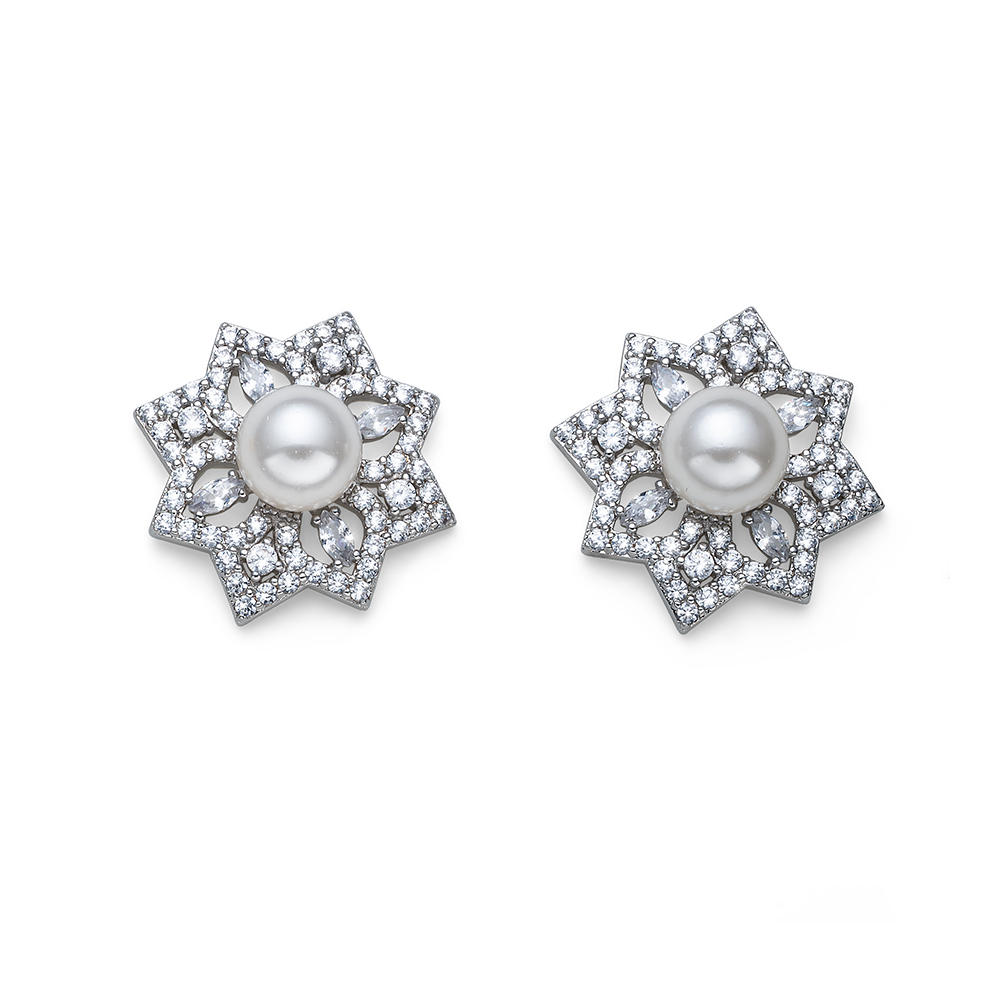 Brilio Nežné náušnice z bieleho zlata s pravou perlou a zirkónmi 14/820.481/17ZIR
