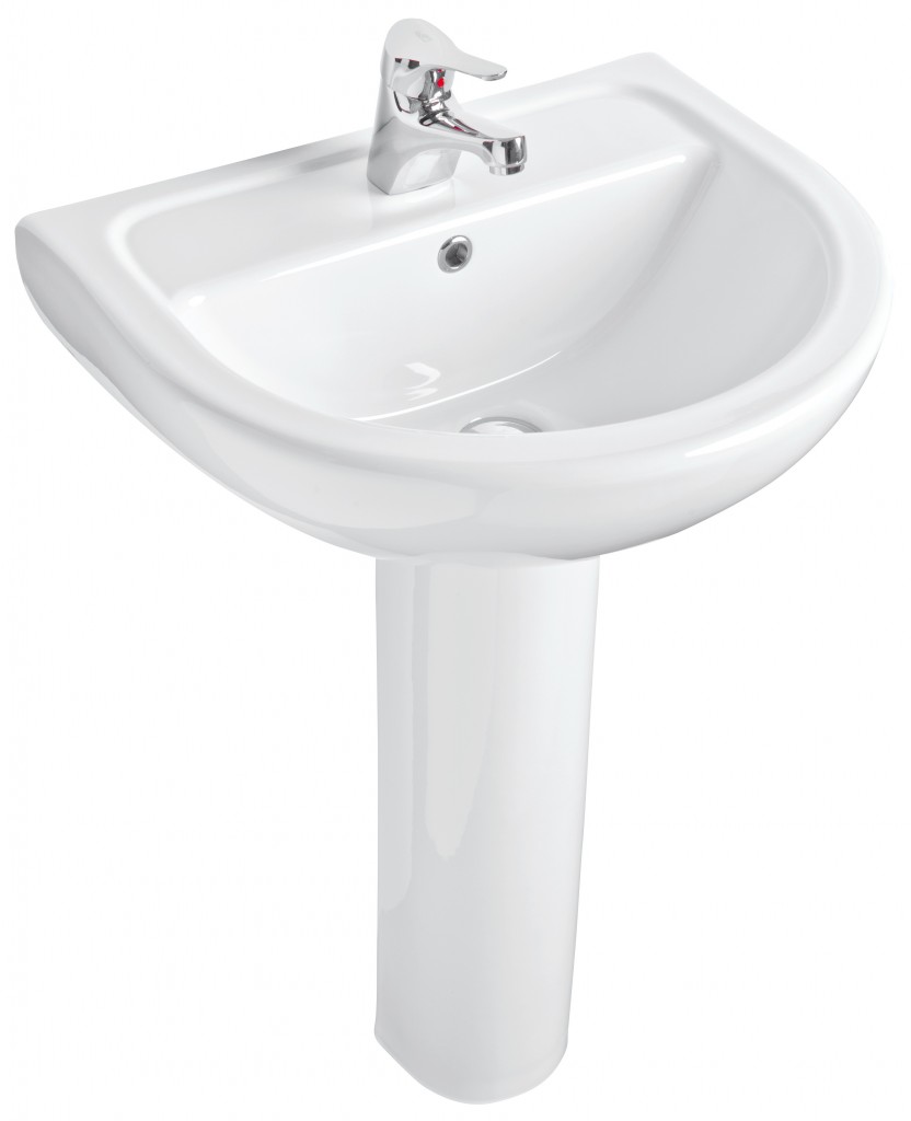 Nástenné umývadlo Olsen Spa COMPACT 55 vyniká čistou dizajnovou líniou oblúka, s mierne vyvýšeným lemom u odkladacích priestorov. Prepadový otvor, na nástenné strane je opatrený pochrómovanou krytkou. Povrch je špeciálne upravený pre jednoduchú údržbu a odolnosť voči poškodeniu. Montáž polostĺpov alebo stĺpu, ktorý umožní vytvorenie uceleného hladkého dizajnu umývadla. Elegantné umývadlo COMPACT z prvotriednej sanitárnej keramiky a ľúbivým klasickým dizajnom. Možnosť zakúpenia s stĺpom či polostĺpom k umývadlu. V našej ponuke tiež nájdete mnoho dizajnových a funkčných doplnkov nielen k umývadlám. Pozrite sa na širokú ponuku klasických i trendy umývadlových batérií a príslušenstvo k nim. Bohatá ponuka kúpeľňových setov , elektrických sušiakov , vešiakov pre Vaše maximálne pohodlie a komfort. Prednosti n ástěnného umývadla COMPACT 55: Umývadlo s jedným otvorom pre batériu a prepadom Ladné oblé tvary Rozmery: 55 × 44,8 × 20,5 cm Rozmery stĺpa: 24 × 33 × 64 cm Rozmery polostĺpov: 24 × 33 × 28,3 cm Špičková povrchová úprava = veľmi ľahká údržba ZÁRUKA 2 roky(GT)
