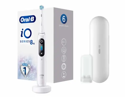 Oral-B iO 8N biela / rotačná zubná kefka / 6 režimov / Bluetooth / časovač / tlakový senzor / displej / puzdro