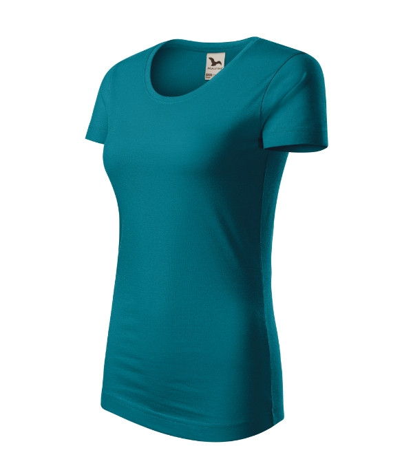 certifikovaná organická bavlna mierne priliehavý strih s bočnými švami úzky výstrih z vrchného materiálu s 5 % elastanu vnútorná časť výstrihu utesnená páskou z vrchného materiálu ramenné švy spevnené páskou tvarovaný spodný okraj viac o norme GOTS