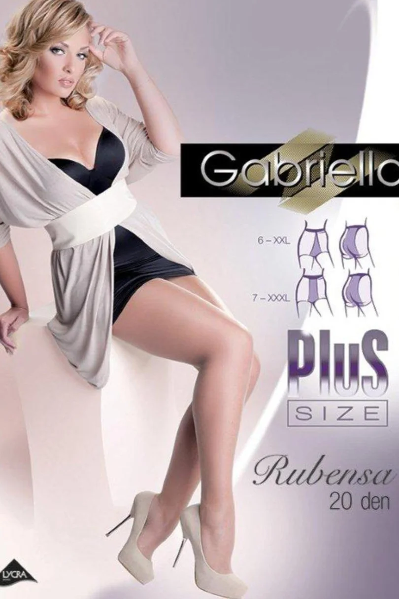 Gabriella Rubensa 20 DEN sú klasické nohavičky navrhnuté s ohľadom na ženy plus size. Vďaka dodatočnému klinu a špeciálne premyslenej konštrukcii sa dokonale prispôsobia postave vo veľkostiach 4XL a 5XL a zaručujú pohodlie a voľnosť pohybu. Elastická priadza s pridanou lycrou jemne obopína nohy a dodáva im hladký vzhľad a prirodzenú farbu. Model Rubensa je elegancia a pohodlie na každý deň..