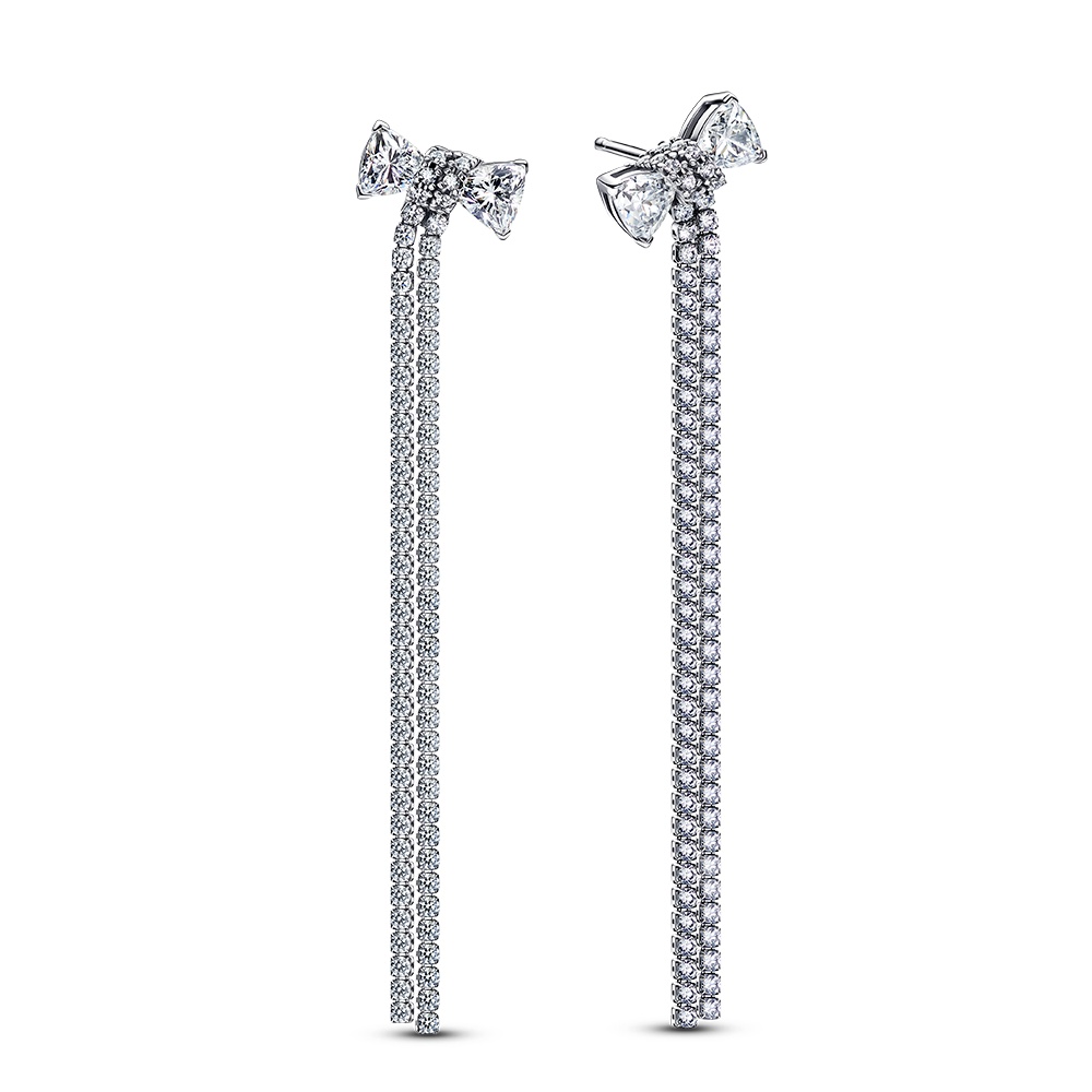 Pandora Visiace strieborné náušnice so zirkónmi mašľa 293544C01