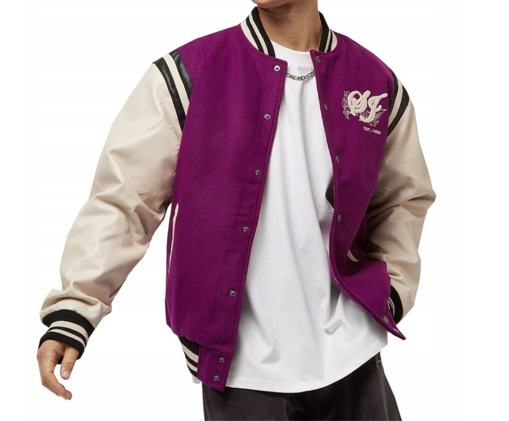 Pánska trojfarebná bunda s nápisom na chrbte a nálepkou na hrudi. Materiál: 70 % polyester, 30 % vlna