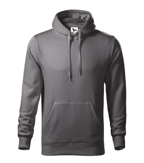 rovný strih s bočnými švami kapucňa s podšívkou, sťahovacia šnúrka vo výstrihu s páskou vo farbe vonkajšieho materiálu nakladané klokanie vrecko spodný lem a manžety rukávov z rebrového úpletu 2:2 s 5 % elastanu vnútorná strana česaná