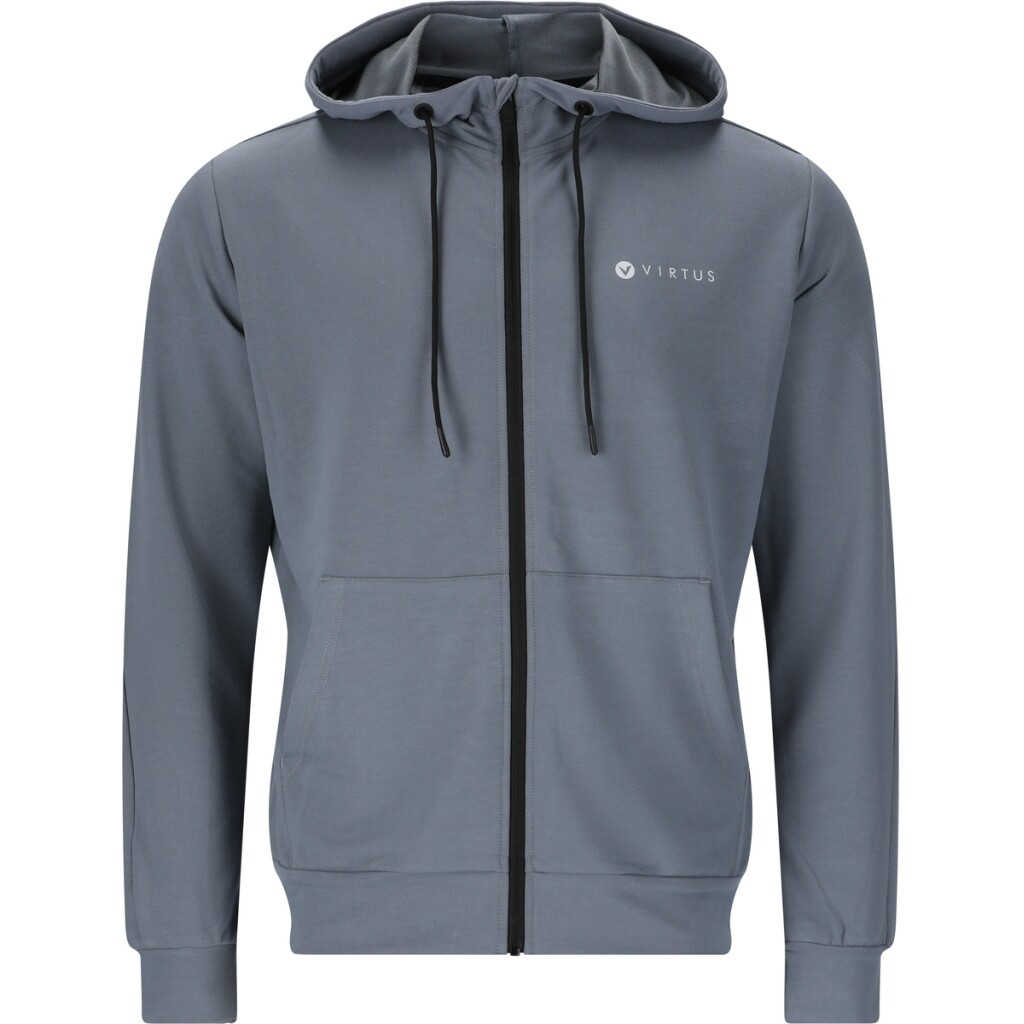 Táto pánska mikina Virtus kombinuje moderný športový dizajn s maximálnym pohodlím. Je vyrobená z mäkkého a elastického materiálu, ktorý zaručuje voľnosť pohybu a príjemné nosenie. Praktická kapucňa so sťahovacou šnúrkou chráni pred nepriazňou počasia, zatiaľ čo zips po celej dĺžke umožňuje jednoduché obliekanie a reguláciu teploty. Dve predné vrecká ponúkajú priestor na drobnosti alebo na udržanie rúk v teple. Mikina je doplnená decentným logom Virtus na hrudi, ktoré dodáva športovému vzhľadu elegantný detail. Ideálna voľba na každodenné nosenie, tréning a voľný čas. Ľahko sa kombinuje so športovým aj ležérnym oblečením.