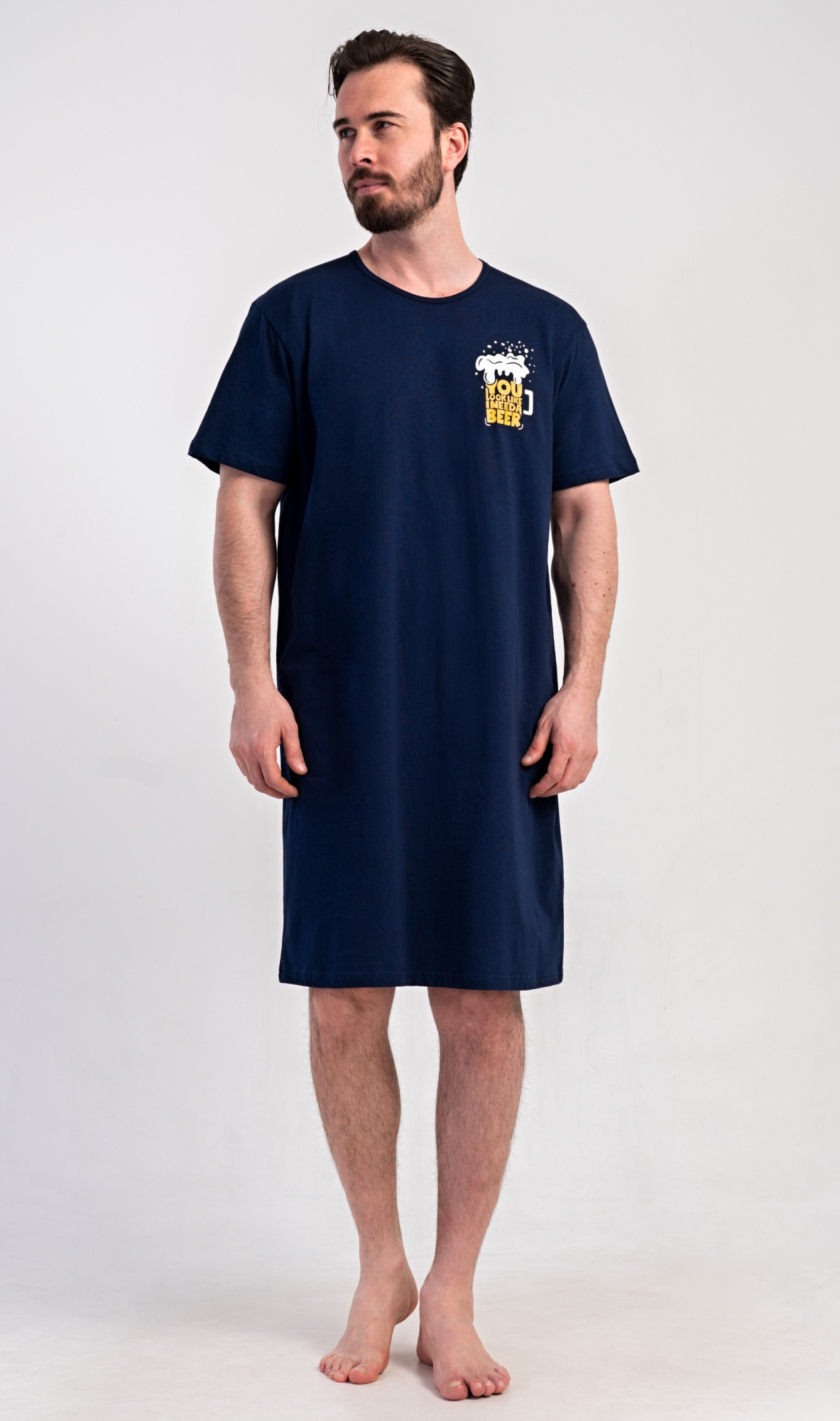Pánska bavlnená nočná košeľa s krátkym rukávom Pivo. Jednofarebná pánska nočná košeľa s okrúhlym výstrihom a dĺžkou po kolená má na hrudi obrázok pinty piva. Nočná košeľa je vhodným darčekom pre všetkých milovníkov piva. 100 % bavlnený materiál je príjemný a pružný na dotyk. Pokyny na údržbu: Plecniak je vyrobený z kvalitného materiálu, ktorý je vhodný pre deti: - materiál: 100% bavlna- možno prať v práčke pri teplote do 30 °C- nesušte v sušičke- žehliť na rubovej strane do 110°- nepoužívajte bieliace prostriedky- chemicky nečistiť Rozmery namerané na výrobku: 5030040000 Pivo M L XL XXL XXXL obvod hrudníka 112 118 124 128 132 dĺžka košele 108 108 108 108 108