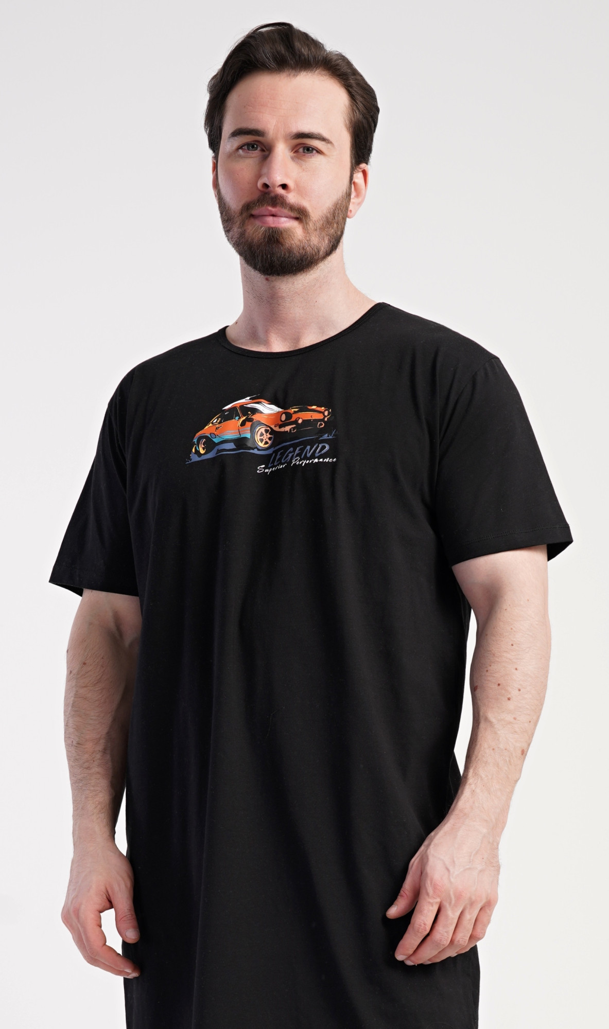 Pánská bavlněná noční košile s krátkým rukávem Legend. Jednobarevná pánská noční košile s kulatým výstřihem a délkou po kolena má na hrudi obrázek závodního auta a nápis 'Legend'. Noční košile je vhodným dárkem pro všechny milovníky rychlých vozů. Použitý materiál s obsahem bavlny 100% je příjemný a poddajný na dotek.