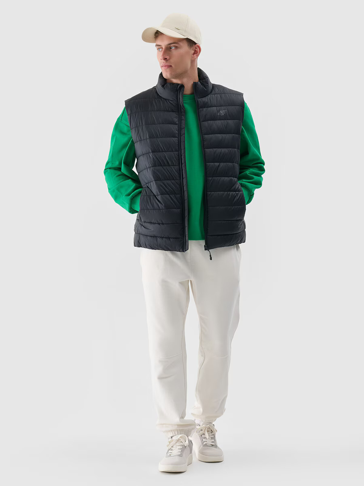 Pánska páperová vesta so stojatým golierom a ľahkou konštrukciou, takže ju môžete nosiť počas každodenných a športových aktivít v teplejších dňoch v prechodnom období. Vďaka svojej nízkej hmotnosti nepridáva pri pohybe žiadnu hmotnosť navyše a je účinnou hrejivou vrstvou, najmä pod bundou s nepremokavou membránou. Nielenže chráni pred chladom, ale skvele funguje aj ako súčasť vrstveného oblečenia. Bundu možno ľahko zložiť a uskladniť. Má pravidelný strih, ktorý sa pohodlne prispôsobí telu, a štandardnú dĺžku, ktorá siaha po líniu bokov. Pánska vesta je vybavená syntetickým páperím, ktoré je odolnejšie a ľahšie sa udržiava ako prírodné páperie. Aj pri vystavení vlhkosti si dlhšie zachováva svoje izolačné vlastnosti a oveľa rýchlejšie schne. Hydrofóbna impregnačná vrstva pokrýva vonkajšiu vrstvu materiálu a chráni ju pred absorpciou vody. Táto vrstva spôsobuje, že vlhkosť sa zráža na povrchu tkaniny alebo úpletu a potom voľne odteká. Krk je zakrytý stojačikom, ktorý ďalej chráni pred chladom a vetrom. Na bokoch sú 2 otvorené vrecká.