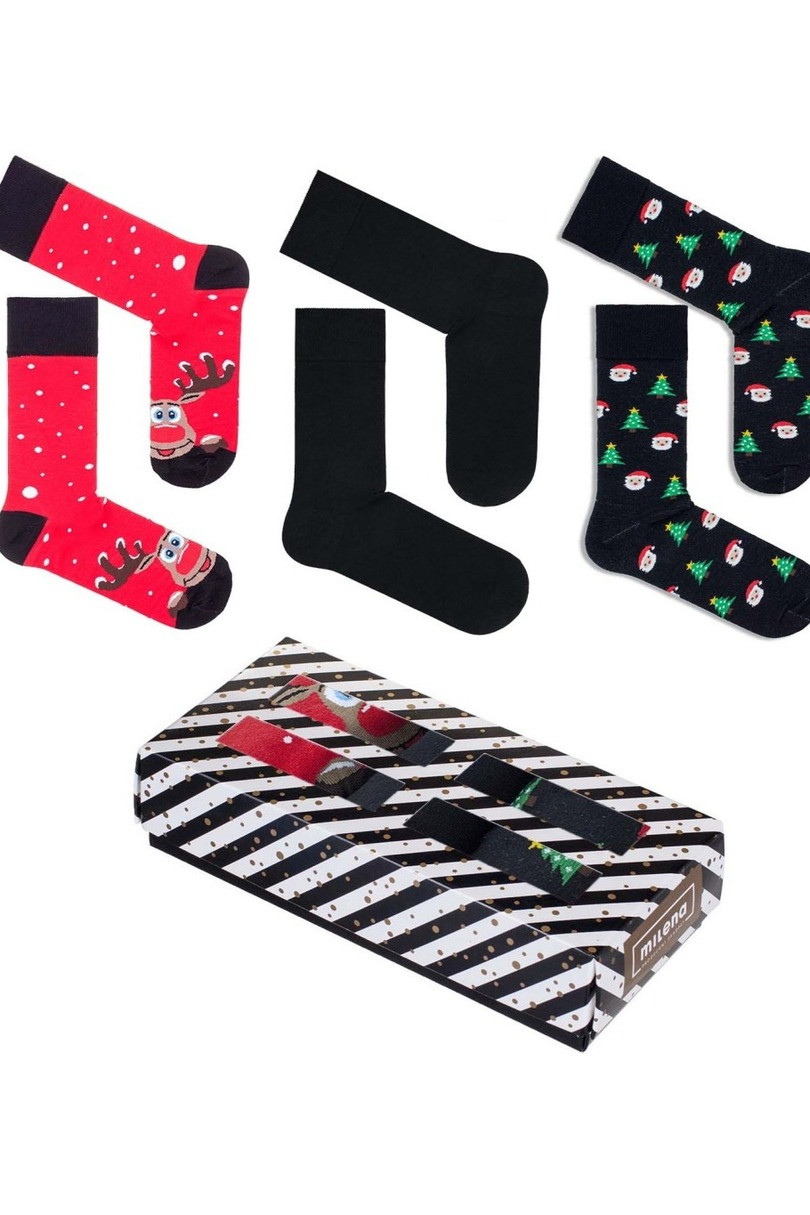 Pánska vianočná súprava sú 3 páry pánskych vianočných ponožiek. Súprava obsahuje dva páry ponožiek s veselým, slávnostným vzorom a jednu obyčajnú ponožku do obleku..