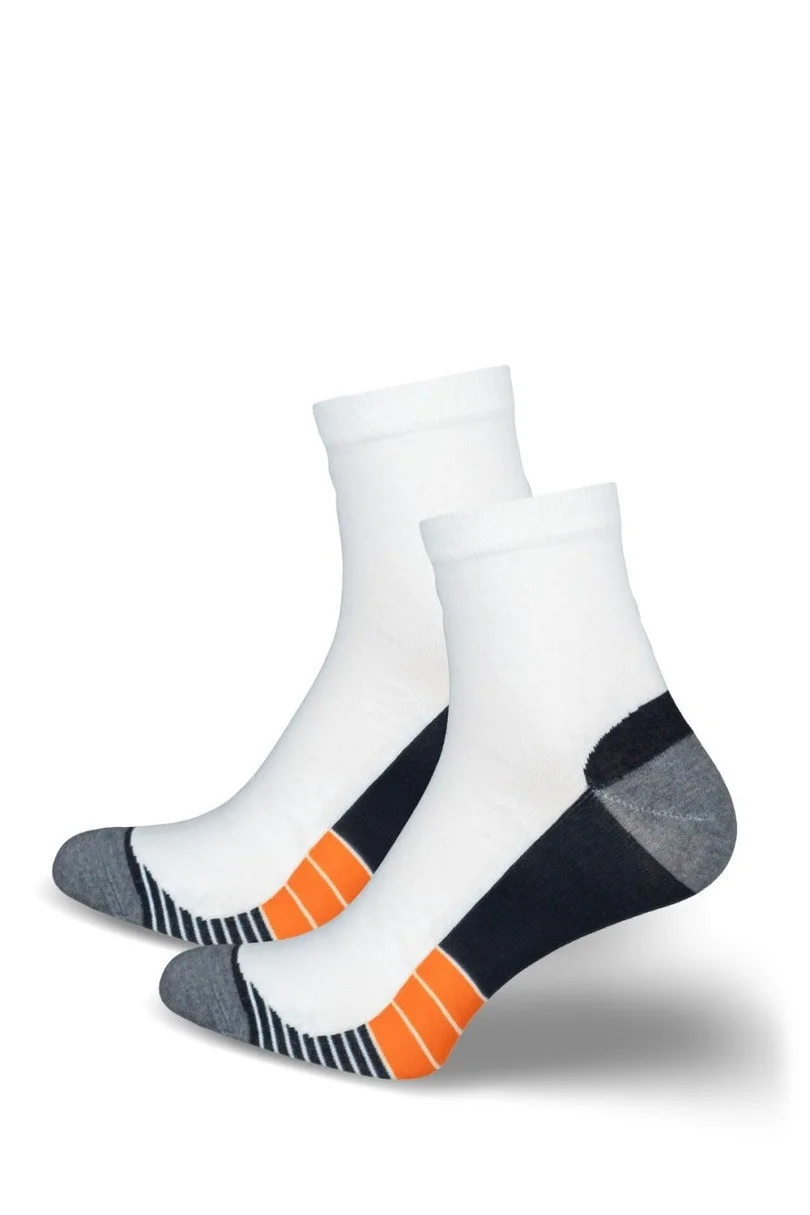 Pánske ponožky ACTIVE 0224.048 od značky MILENA sú vynikajúcou voľbou pre mužov, ktorí vedú aktívny životný štýl. Športový dizajn a vzorované prevedenie im dodávajú moderný charakter, zatiaľ čo sofistikované zloženie materiálu zaručuje maximálne pohodlie počas používania. Vďaka obsahu až 75 % bavlny sú ponožky príjemné na pokožku a umožňujú chodidlám dýchať, zatiaľ čo prídavok polyamidu a elastanu zvyšuje ich pružnosť a odolnosť. Sú ideálne na tréning aj každodenné nosenie - nielenže podporujú chodidlo, ale aj skvele vyzerajú..