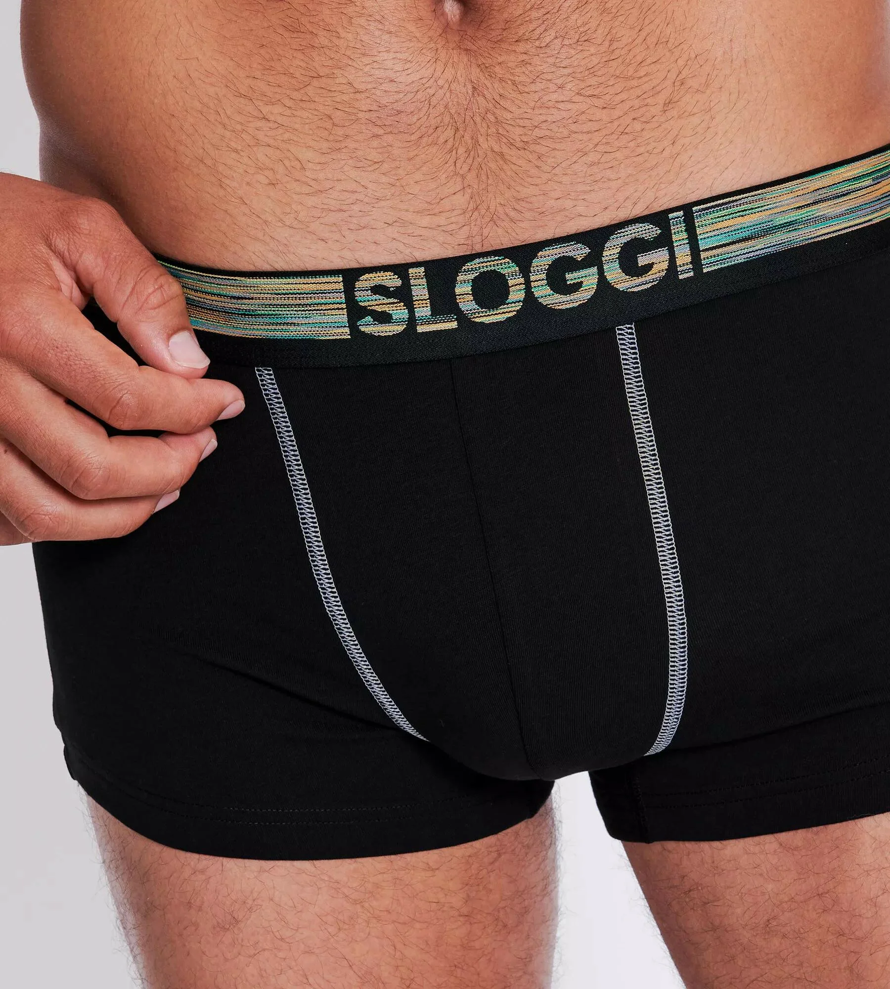 Vezmite si dvojbalenie našich nohavičiek GO ABC Natural Hipster z veľmi mäkkej organickej bavlny s výraznými pásikmi značky sloggi, ktoré sú čiastočne vyrobené z recyklovaných materiálov. Balenie dvoch hipster boxeriek Vyrobené z extra mäkkej organickej bavlny Výrazný pásik značky sloggi z pestrofarebnej priadze, čiastočne vyrobený z recyklovaných materiálov OEKO-TEX® STANDARD 100, 23821 OETI 95% bavlna, 5% elastan