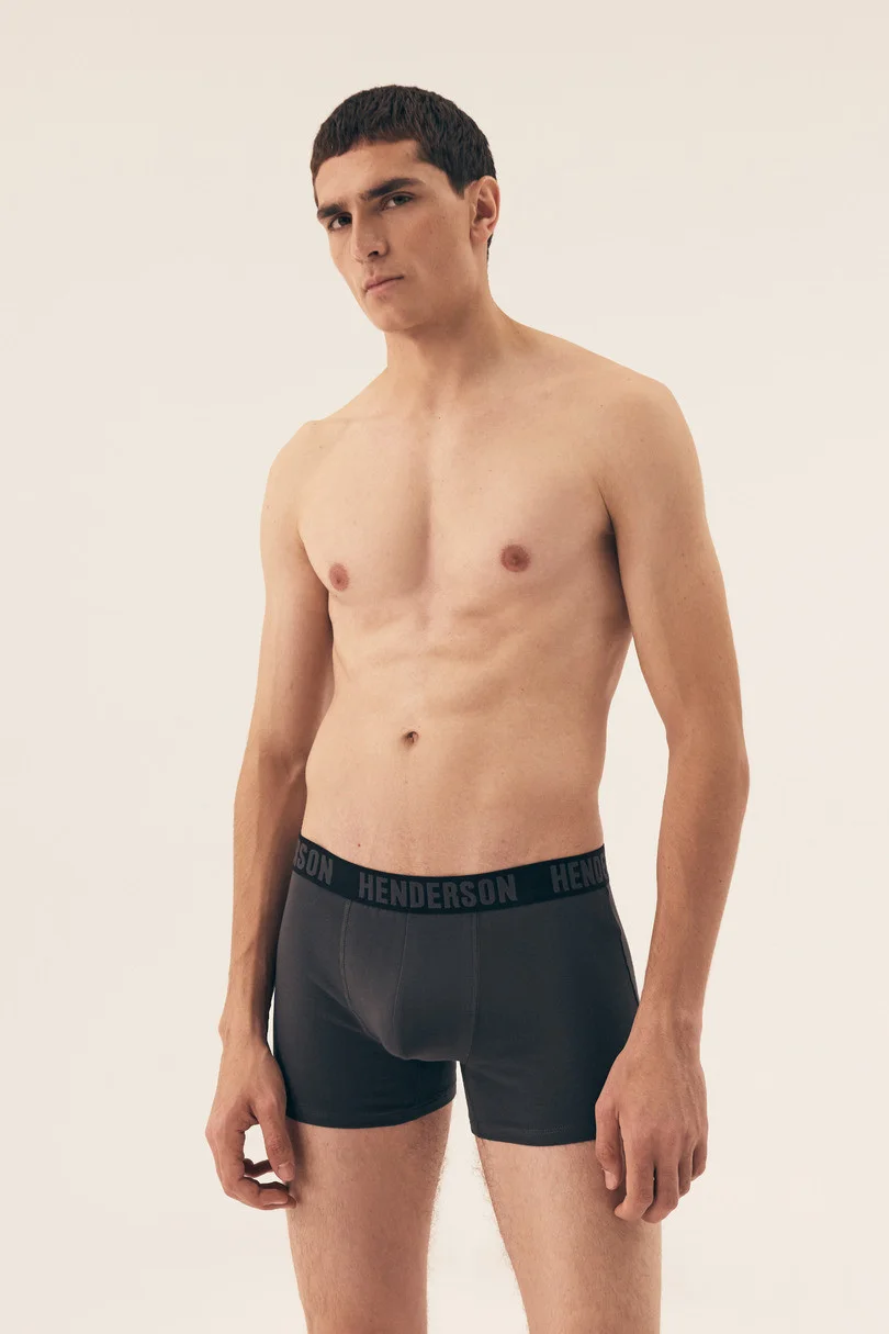 Pánske boxerky z vysokokvalitnej bavlny, široký elastický pás s logom spoločnosti, stredná dĺžka nohavíc. Balenie po piatich kusoch: čierne a grafitové. Zloženie: 95 % bavlna, 5 % elastan.