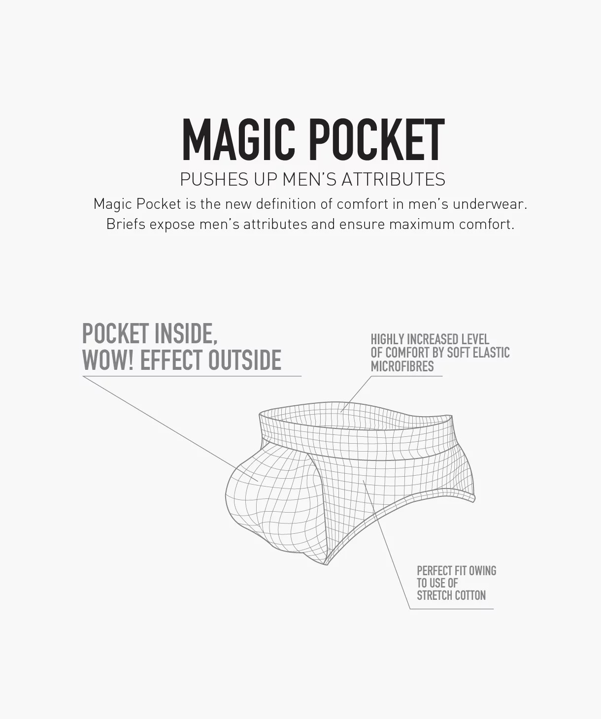 Pánske nohavičky Magic Pocket, Sexy kolekcia - Pánske spodné prádloZoznámte sa s novou edíciou pánskych nohavičiek Magic Pocket. Športové nohavičky majú stredne široké boky a nízky pás zakončený širokou vonkajšou gumou s nápisom Atlantic Up MAGIC. Nohavičky majú tvarovacie švy a košík, v ktorom sa nachádza Magic Pocket, ktorý je zodpovedný za nadvihnutie a zväčšenie poprsia. Nohavičky sú vyrobené z bavlneného elastického úpletu, ktorý je kombináciou na dotyk príjemnej bavlny a elastanu. Úplet je príjemný k pokožke, priedušný a zabraňuje nadmernému poteniu. Očakávajte jedinečný zážitok, dokonalé prispôsobenie a najvyššiu úroveň pohodlia. ČIERNA95 % bavlna, 5 % elastan